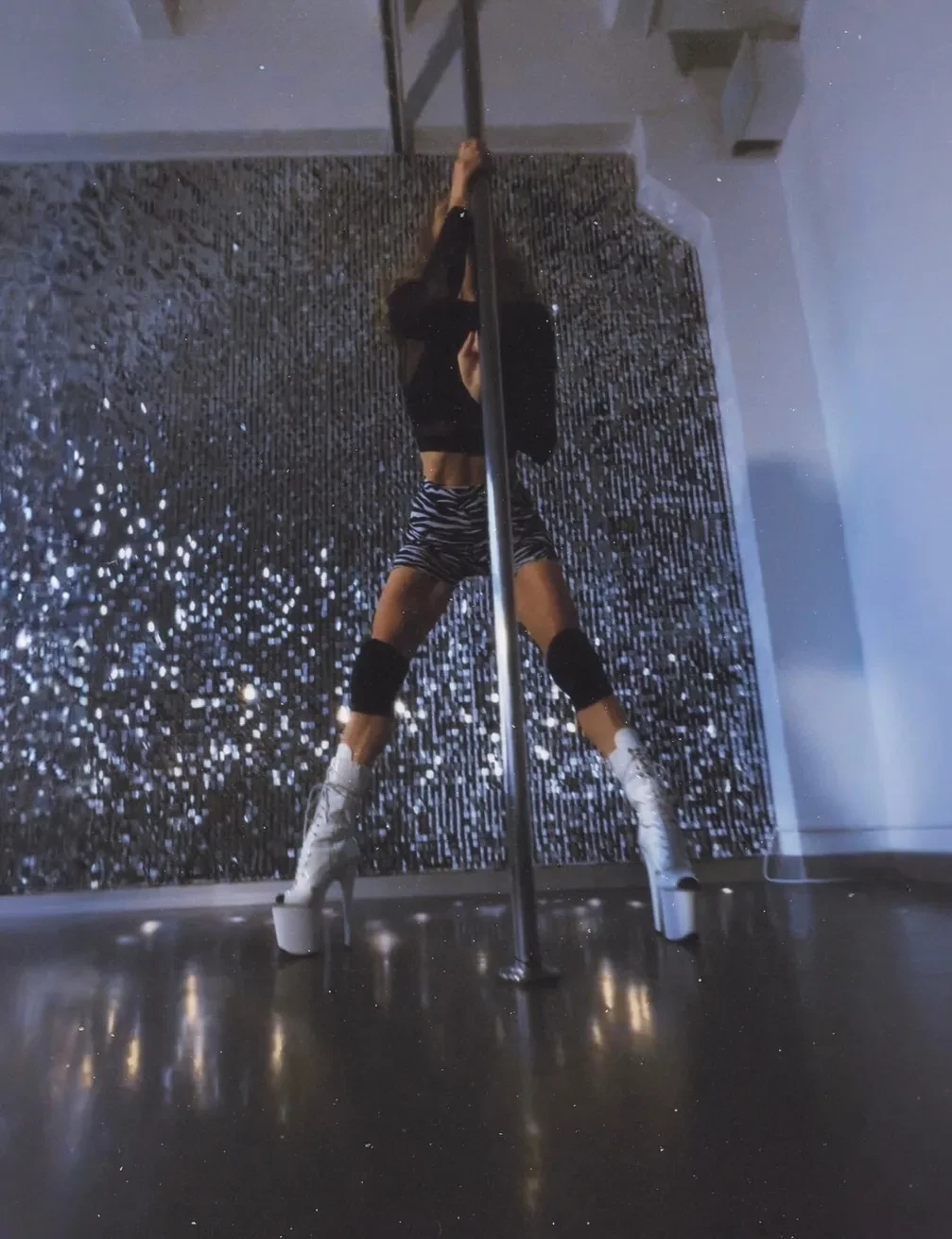 Светлана Ходченкова, которая совсем недавно вернулась из отпуска в Италии, поделилась в инстаграме* новым фото с тренировки по пол-дэнсу. 42-летняя актриса уже давно занимается танцами на пилоне и на этот раз выбрала для занятий мини-юбку зелёного цвета, белую блузку и стрип-туфли на высокой платформе.
