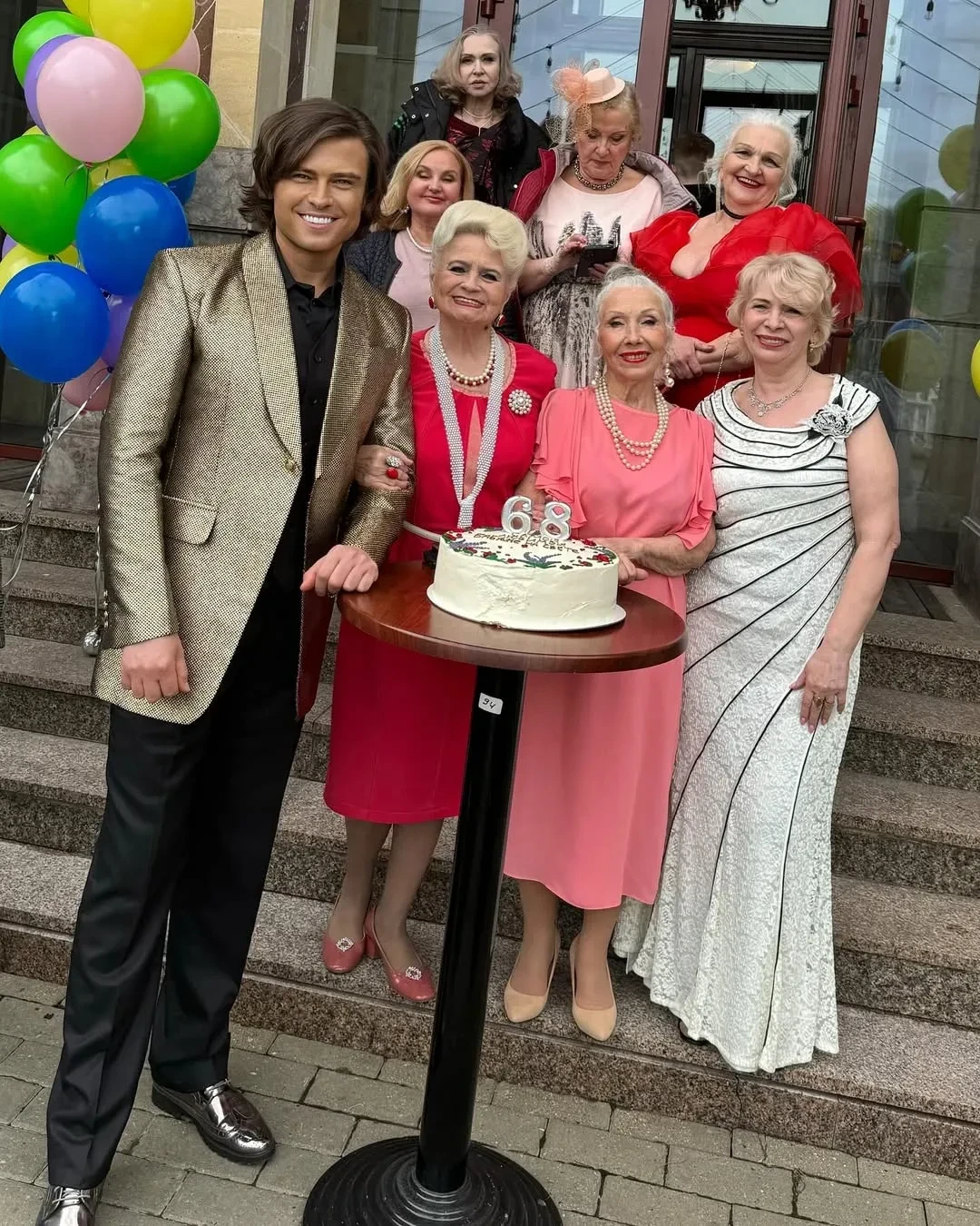 Ну оставим в покое Аллу Борисовну. Она для меня неоднозначная фигура, потому что, ну, страна всё дала Алле Борисовне. Не каждому всё дали. Не все добиваются таких успехов, и для меня она неоднозначна. Но в то же время я считаю, что не имею права как артист, который не достиг таких высот, унижать или публично её оскорблять.Прохор Шаляпин и Ксения Собчак (в образе бабушки)
