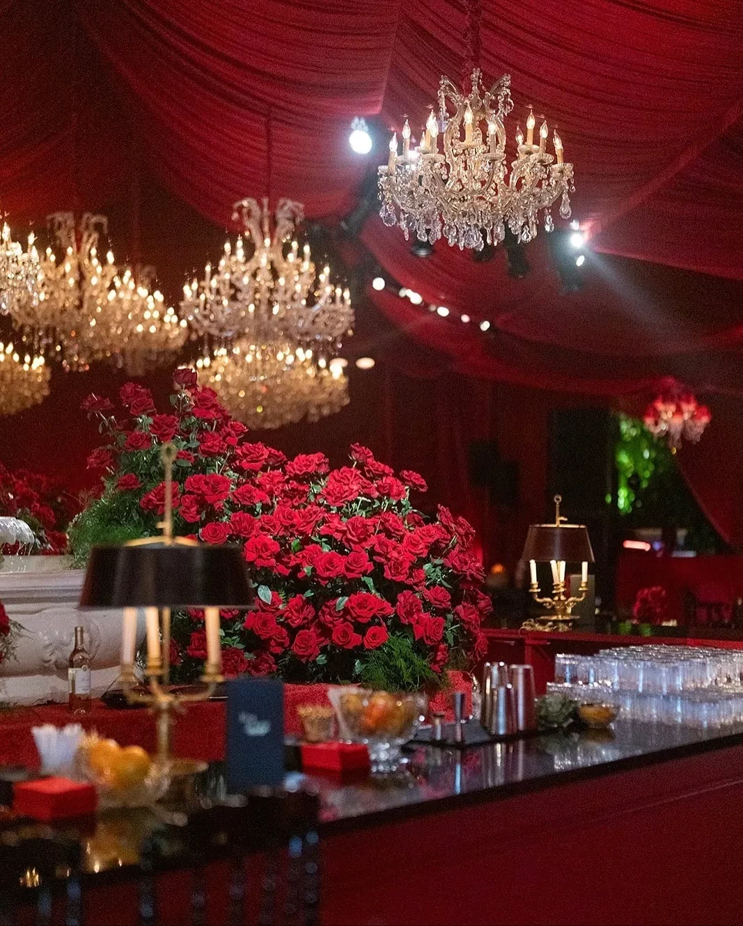 На торжестве в стиле "Казино Рояль" собралось около 300 гостей, среди которых были знаменитые и влиятельные друзья Крис: миллиардеры, селебрити и бизнесмены, а также дочери — Ким, Кортни и Хлоя Кардашьян, Кайли и Кендалл Дженнер. Именинница встречала гостей в красном платье с оборками и назвала прошедшую ночь "одной из лучших в жизни".