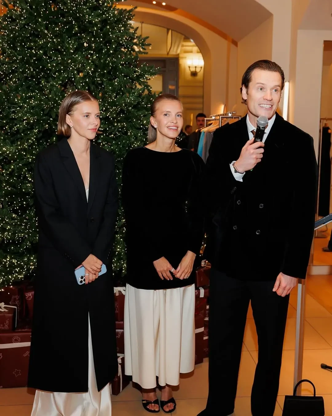 На днях в магазине 12 Storeez в ГУМе прошла светская презентация новогодней коллекции бренда. Гостей встречали сооснователи марки Ирина Голомаздина и Иван Хохлов, а третья соосновательница Марина Голомаздина по неизвестной причине пропустила мероприятие родного бренда.