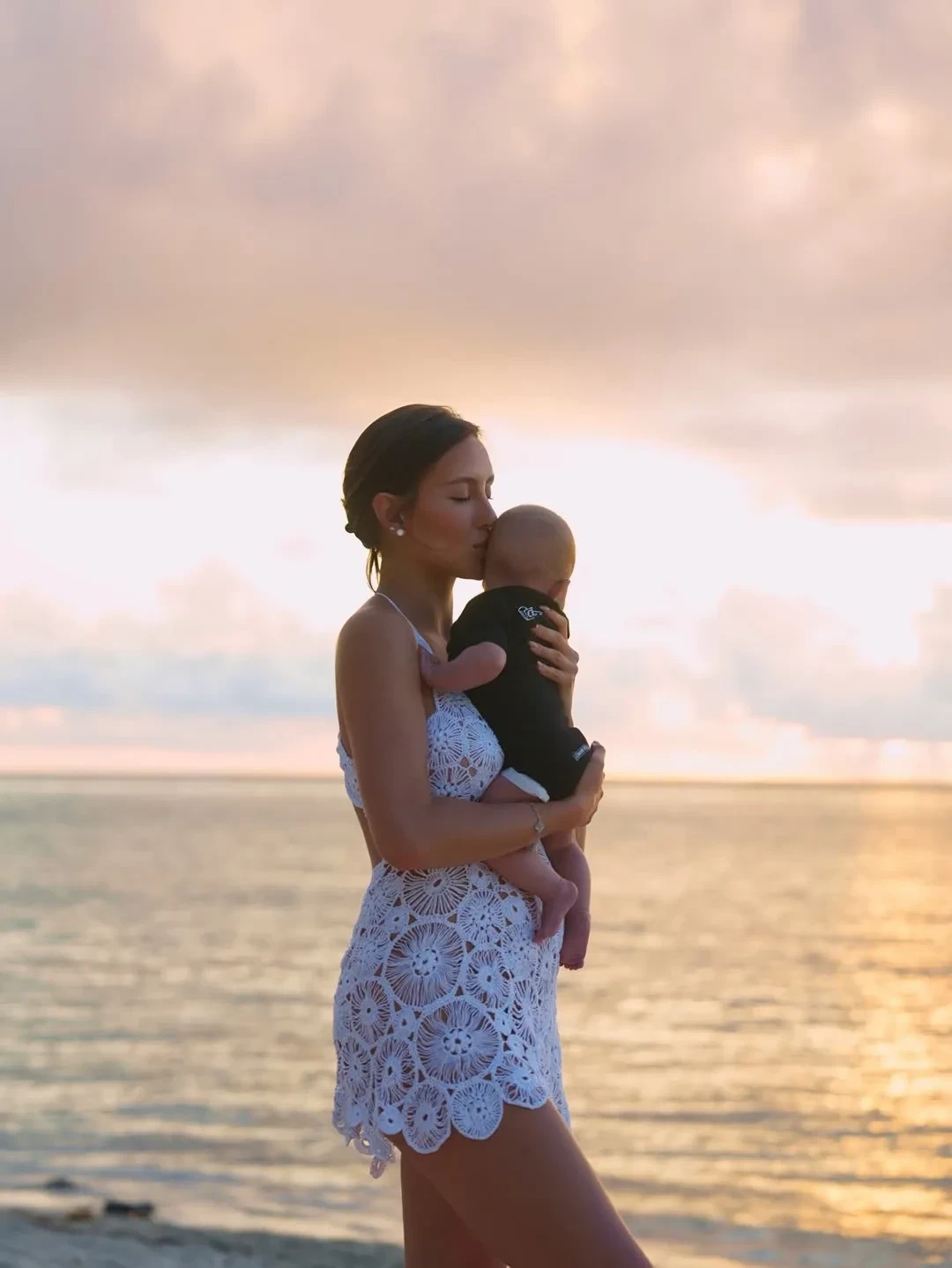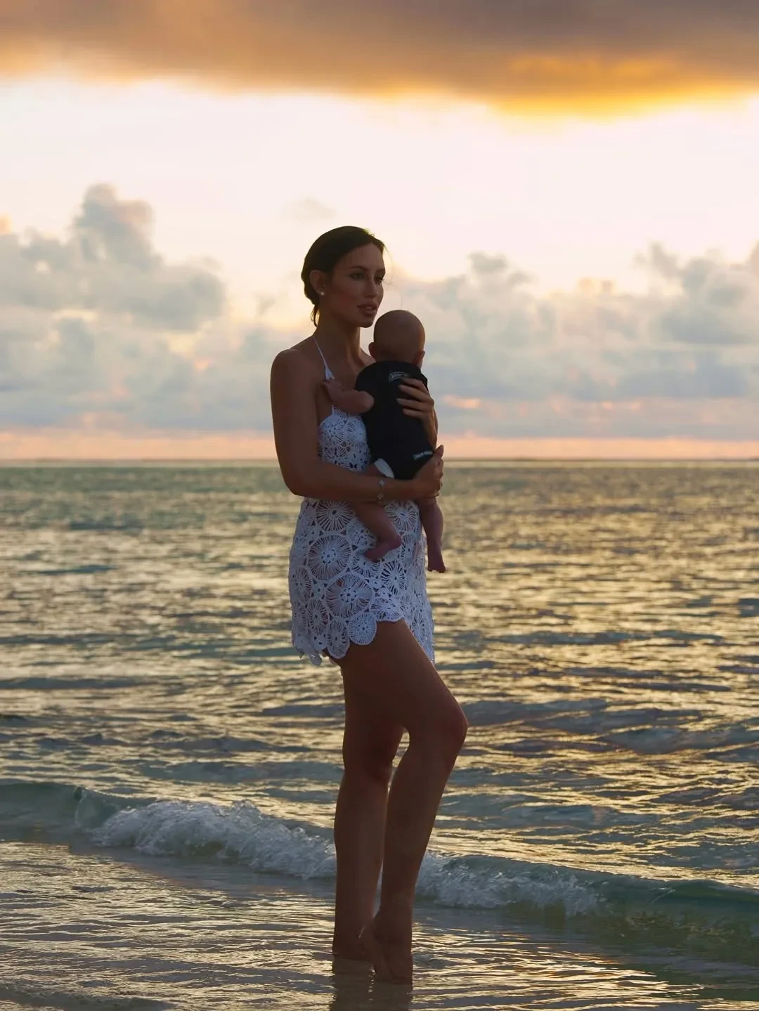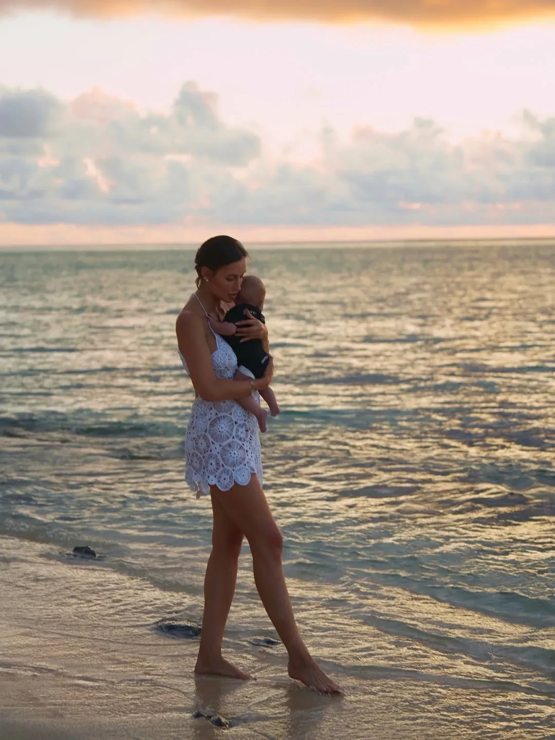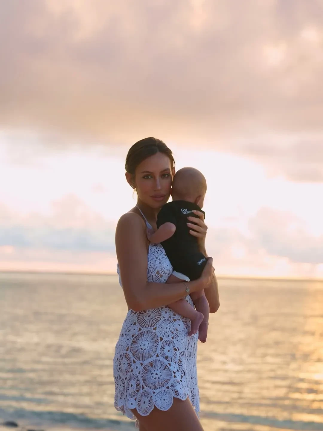 На снимках модель позирует на песчаном пляже на фоне океана и закатного неба. Дочку, которую зовут Эмма, она держит на руках. “Моя маленькая вселенная, моя Эми”, — подписала Валентина кадры. Её публикацию лайкнули многие известные личности, включая мать Тимати Симону Юнусову.