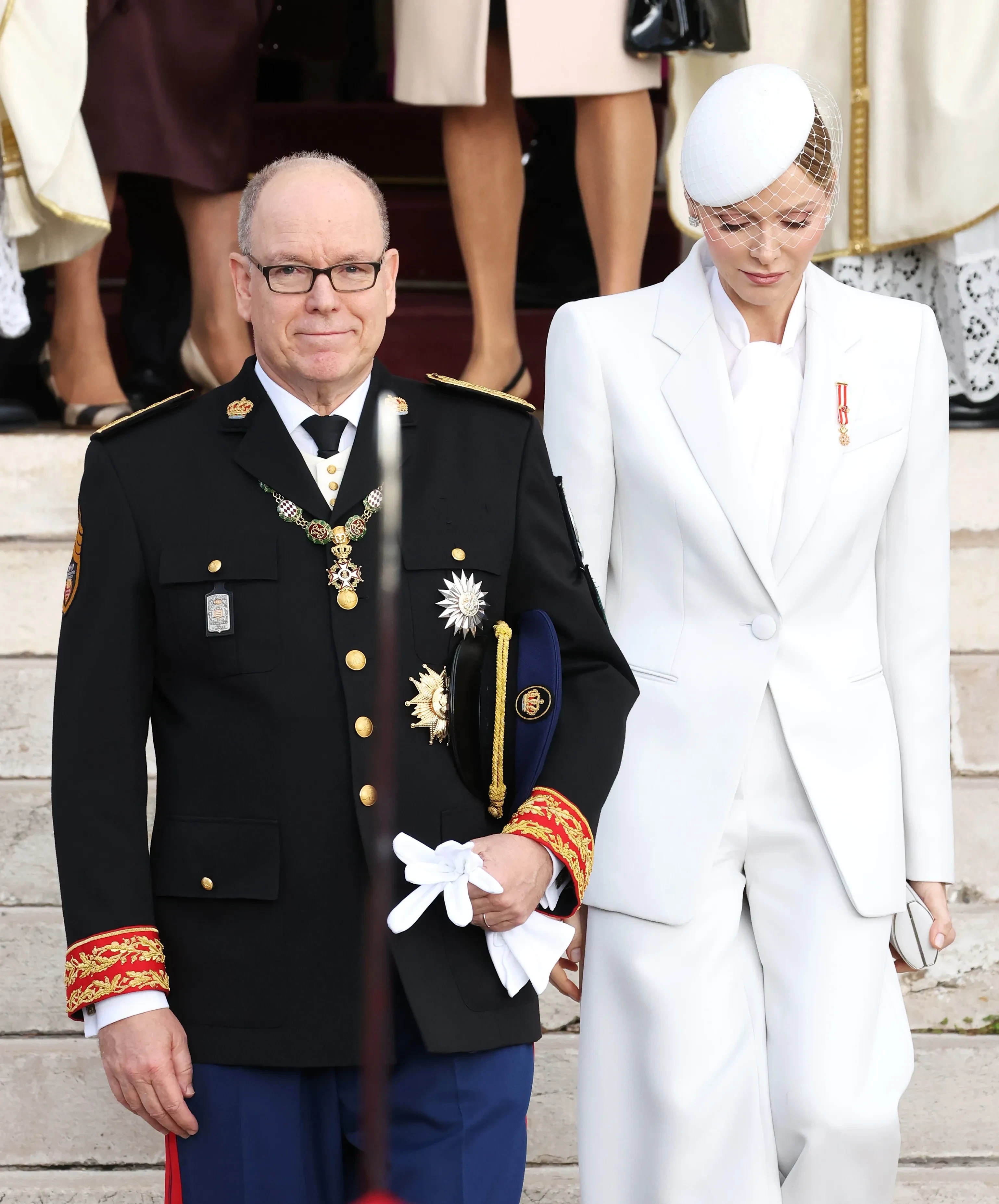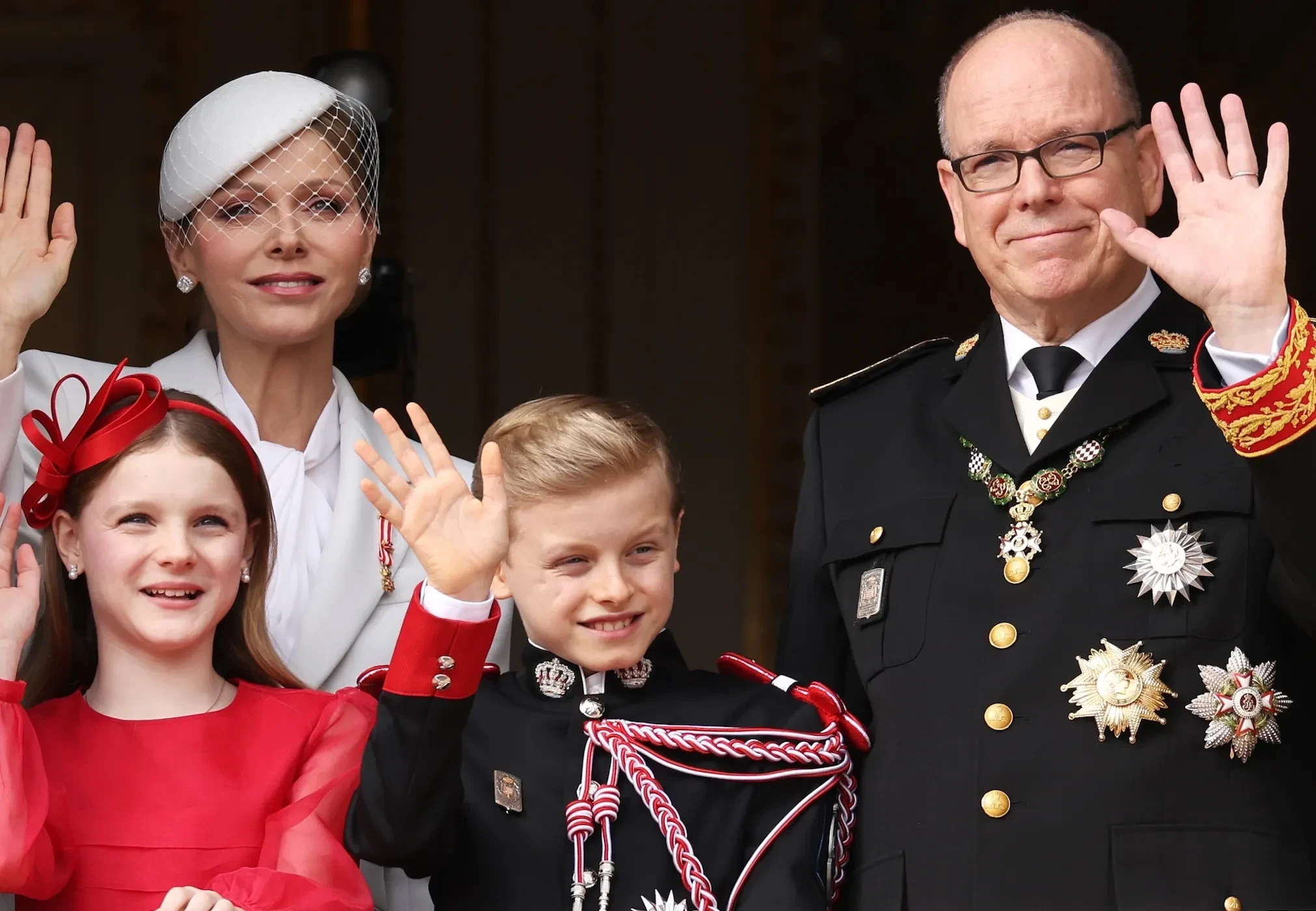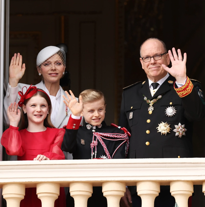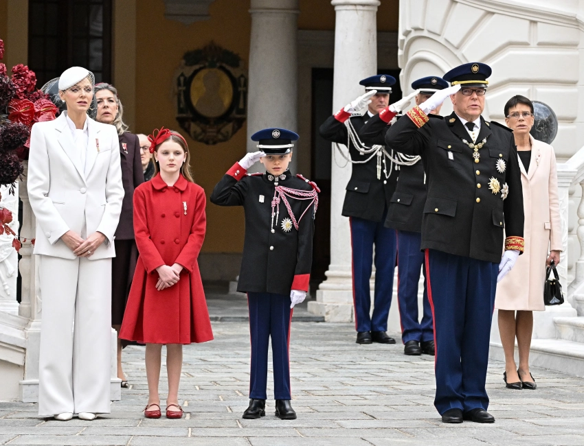 47-летняя княгиня Шарлен появилась перед публикой в белом брючном костюме и шляпе с вуалью, а 67-летний князь Альбер — в парадном костюме с наградами. Супруги вместе с 10-летними детьми — принцем Жаком и принцессой Габриэллой — поприветствовали военных, архиепископа и жителей Монако возле дворца, а также вышли на балкон.