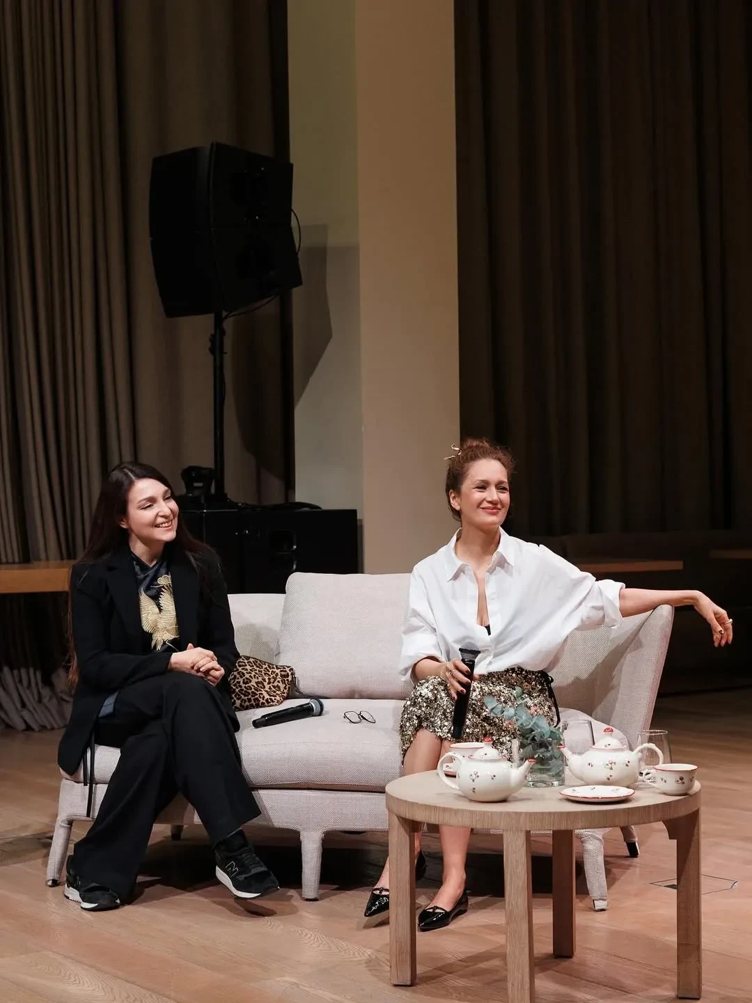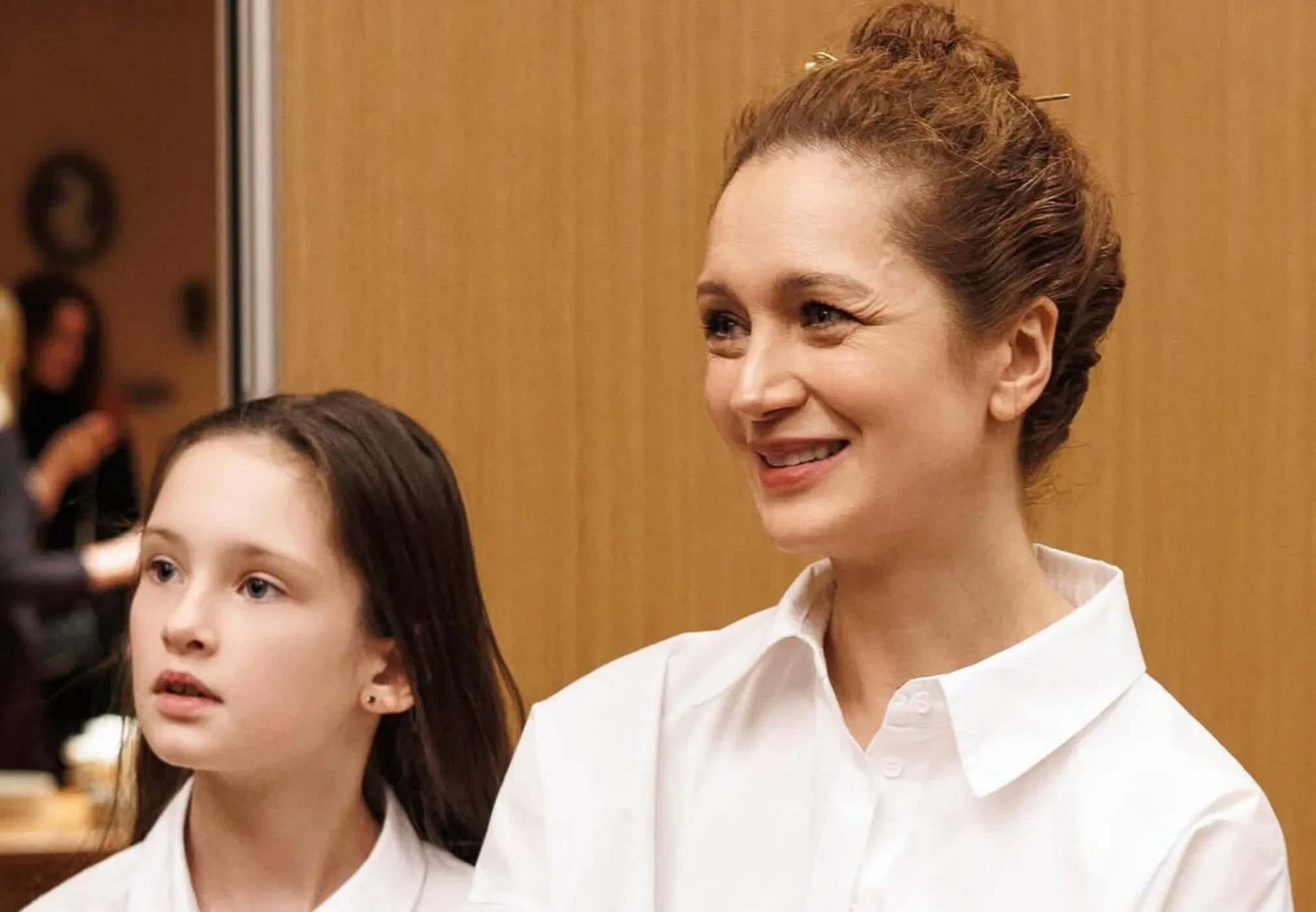 На снимках Исакова запечатлена вместе с дочерью во время мероприятия, организованного косметической компанией. На одном фото Варвара что-то шепчет матери на ухо, а её лицо скрыто, но уже на другом — и мать, и дочь смотрят вперёд. "Варя сопровождала, даже не совсем скучала, даже не сердилась, хотя ей это пока не интересно. И даже фотографировалась со мной", — подписала 49-летняя актриса пост.