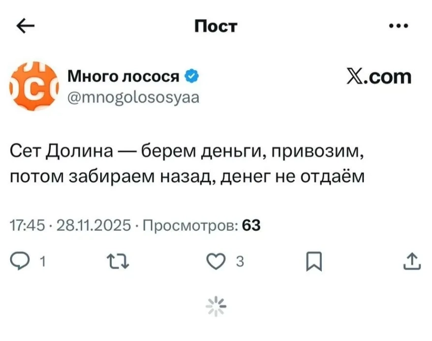Лариса ДолинаПохожим образом пошутили в соцсетях сети доставки суши и роллов “Много лосося”: “Сет Долина — берём деньги, привозим, потом забираем назад, денег не отдаём”.