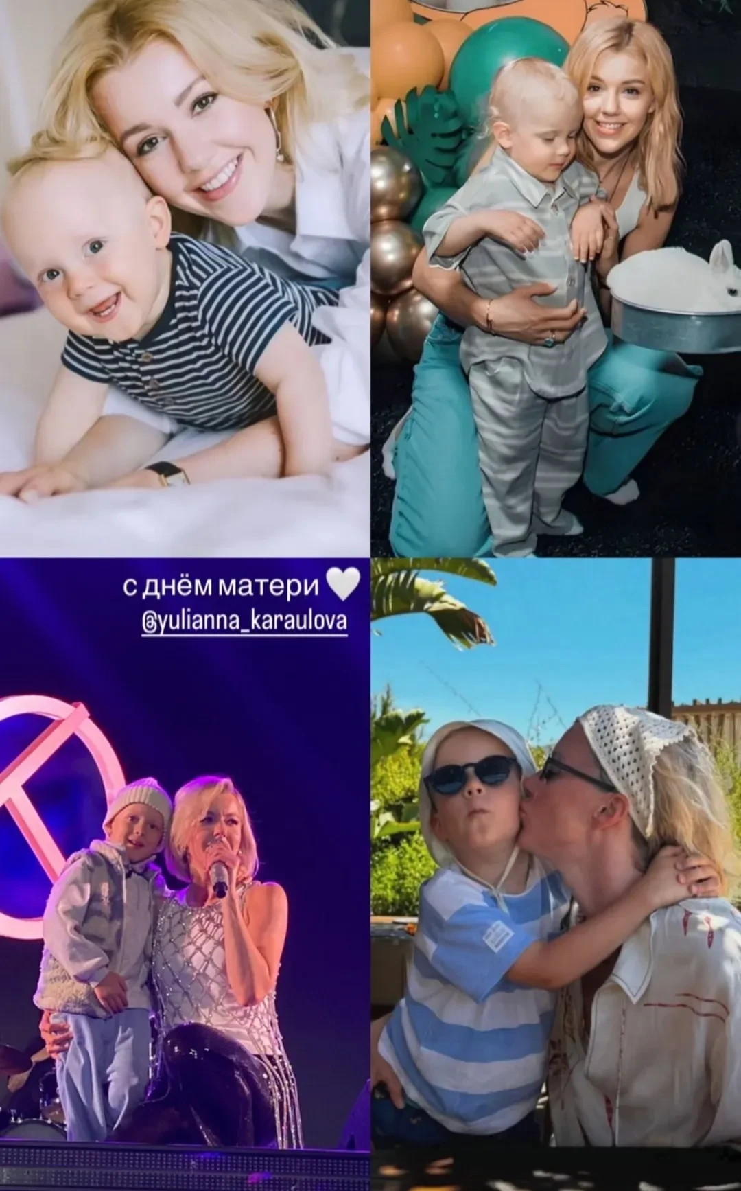 Катерина Ковальчук с мамойГригорий Лепс с мамойИрина Безрукова с сыномГалина Юдашкина с мамойВладимир Пресняков с мамойДети Альбины ДжанабаевойЛяйсан Утяшева с семьёйДенис Клявер с мамойАлина Загитова с мамойДиана Манасир с мамойАлсу с мамойМакSим с мамойЕкатерина Климова с мамойЛяйсан Утяшева с мамойСимона Юнусова с мамойДима Билан с мамойВалерия с мамойМария Кожевникова с детьмиНиколай Василенко с мамойКсения Соловьёва с детьмиАлина Загитова с мамойФото Ляйсан УтяшевойЮлианна Караулова с сыномФото: maximartist, gvleps, klimova_ekaterina, nikolay_anatolievich_vasilenko, simona280, valeriya, azagitova, bilanofficial, yulianna_karaulova, presnyakovvladimir, gyudashkina, irina_bezrukova_official, alsou_a, mkozhevnikova, kseniasolovieva_official, manasirdiana, denisklyaver, albinadzhanabaeva, liasanutiasheva, katerinakovalchuk/Instagram*