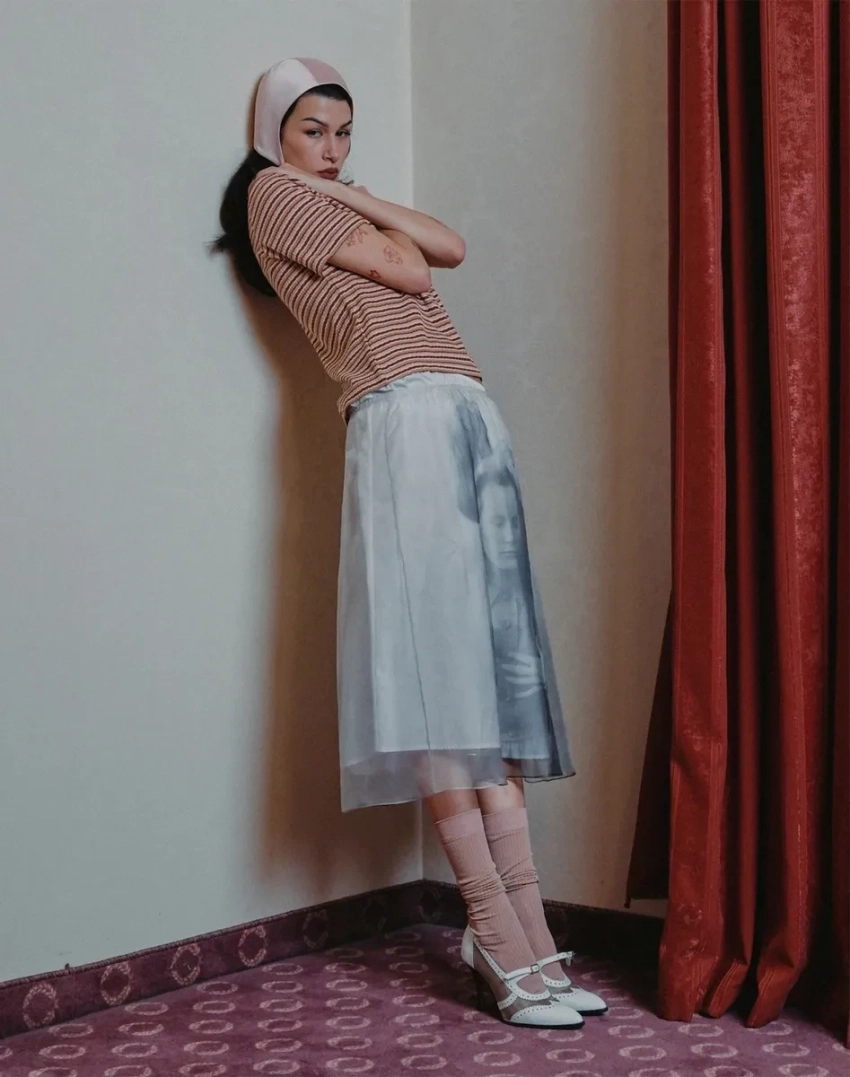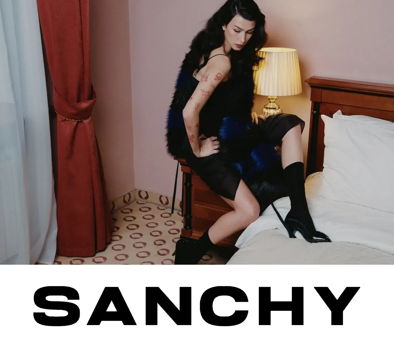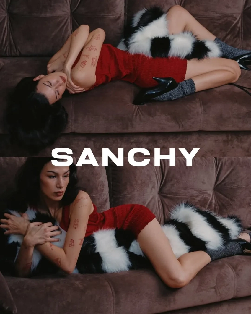 Эрика Кикнадзе примерила вещи из новой коллекции Sanchy — After Midnight. Стилизовал съёмку Ибрагим Гатциев — стилист и сооснователь российского бренда одежды Planta Rosa, для которого совсем недавно снялась Кикандзе и который Гатциев покинул этим летом из-за разногласий с коллегой Евгенией Павлин.