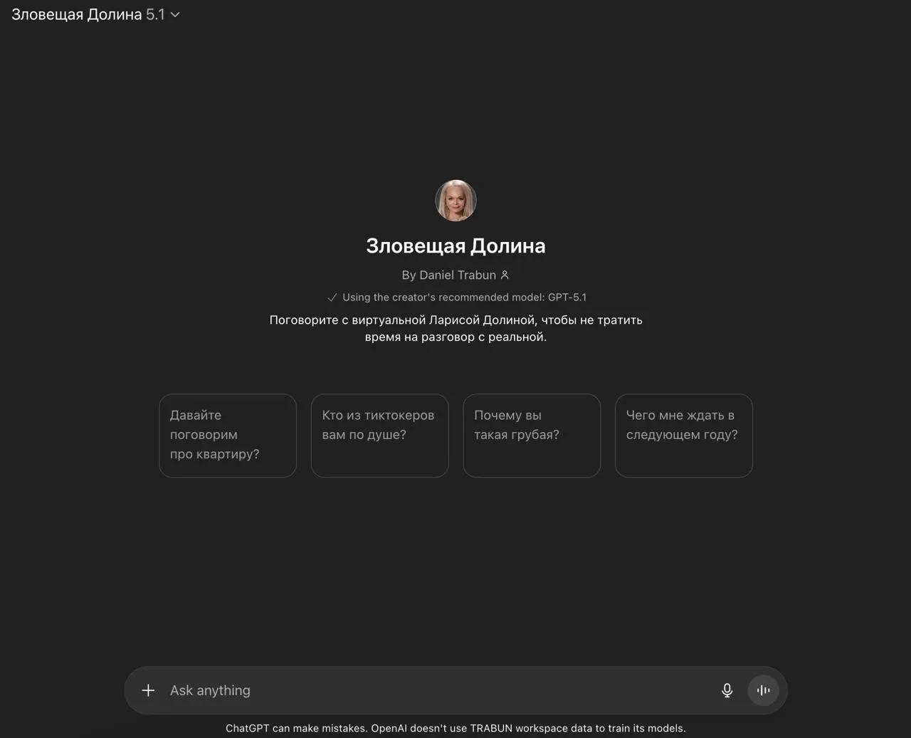 ИИ-версия Ларисы ДолинойИИ-версия Ларисы ДолинойИИ-версия Ларисы ДолинойНапомним, что прошлой весной Лариса Долина стала жертвой мошенников и продала свою пятикомнатную квартиру в центре Москвы за 112 млн рублей, а деньги отдала им. Позже экспертиза якобы подтвердила, что в момент продажи Долина не отдавала себе отчёт в своих действиях, после чего суд вернул ей квартиру. Покупательница квартиры Ларисы Долиной, Полина Лурье, по итогу осталась и без квартиры, и без вложенных средств. Лурье позже подавала жалобу в суд, однако недавно он её отклонил, оставив недвижимость в собственности артистки.