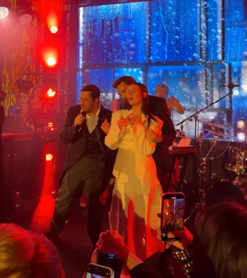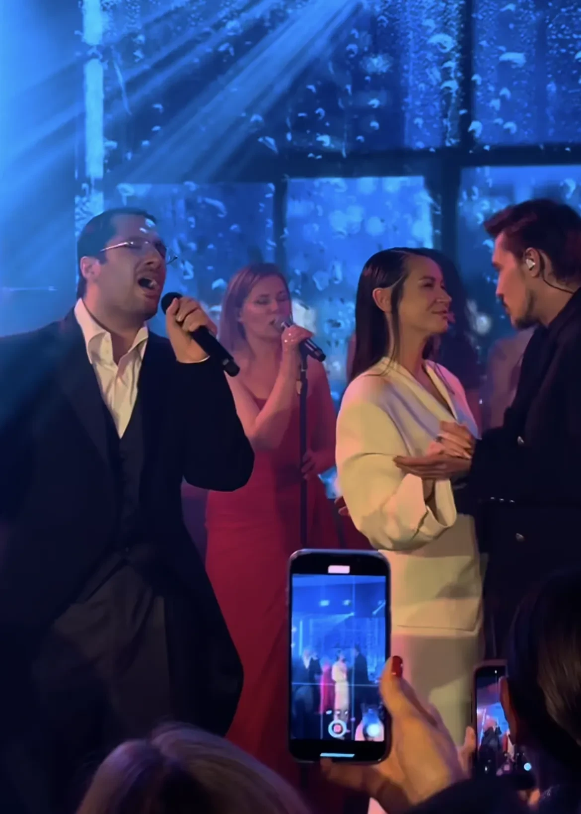 Алеко и Тина КанделакиИда Галич, Алеко и Надежда СтрелецДиана Пожарская и АлекоДиана ПожарскаяНадежда Стрелец и Тина КанделакиТина КанделакиДля гостей выступил Дима Билан, а во время исполнения одной из песен, чтобы станцевать с Идой Галич, он передал микрофон Алеко. Стилист исполнил хит Билана "Я просто люблю тебя", а ролик с выступлением троицы стал вирусным. К слову, Алеко уже не в первый раз примеряет на себе роль певца: на свадьбе Ксении Бородиной он спел вместе с Zivert.