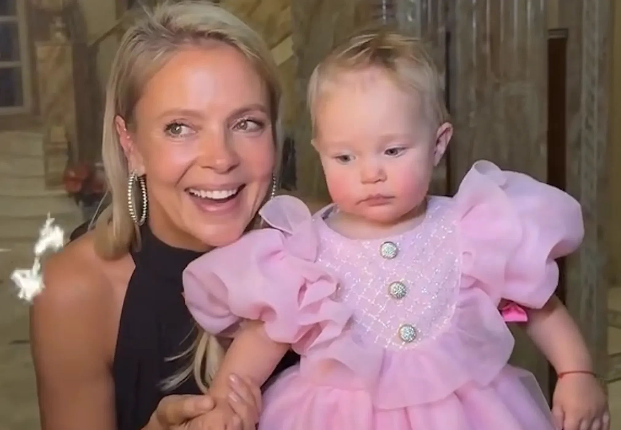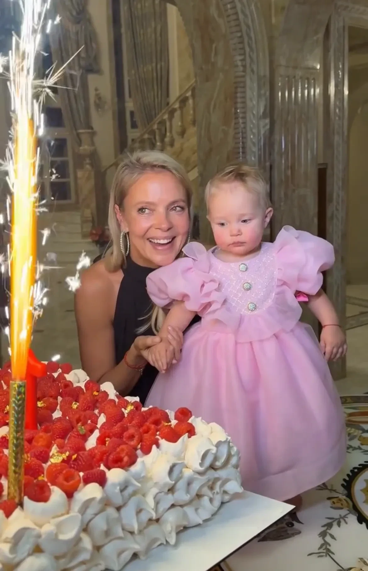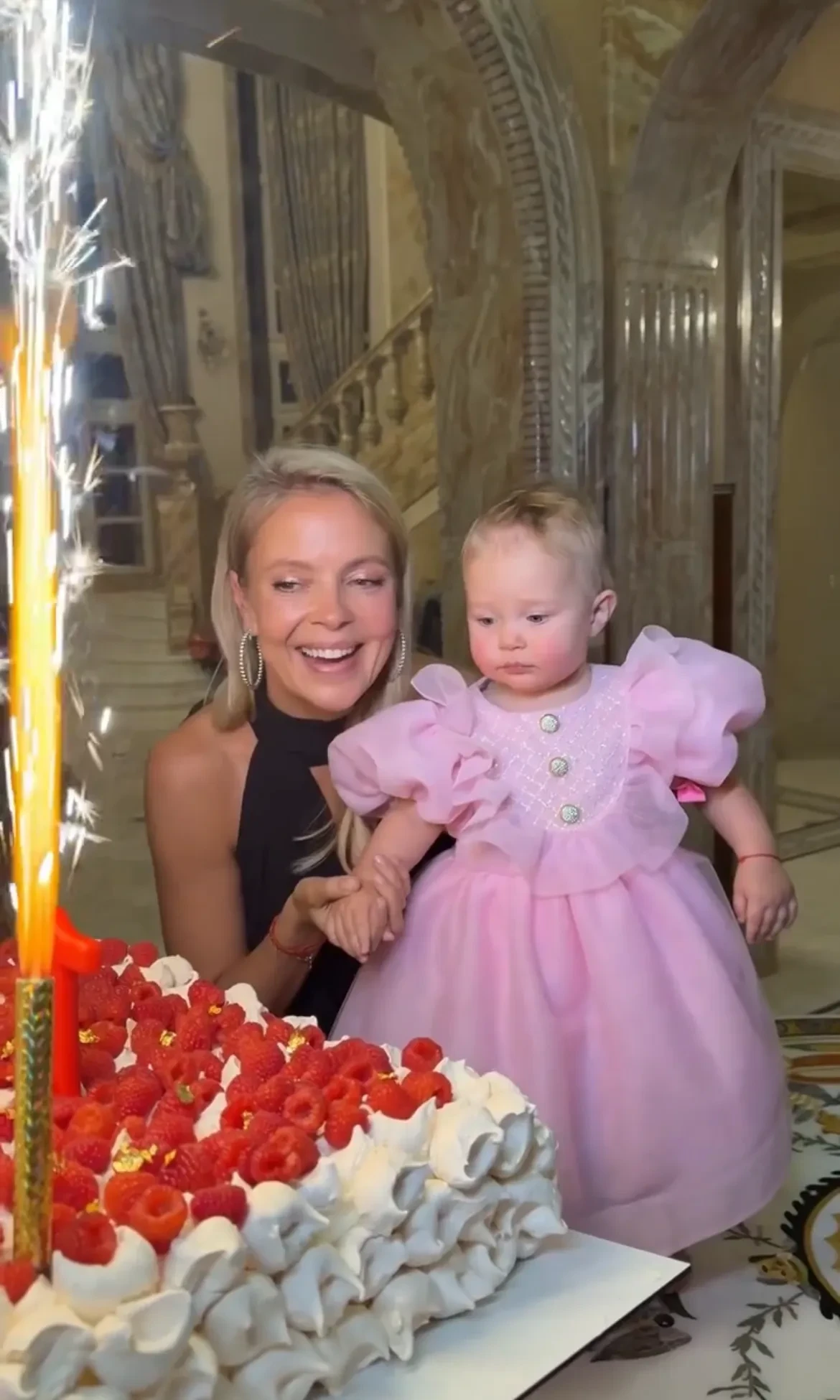 На празднике именинница была одета в розовое платье с блестящими пуговицами, а её мать Виктория позировала рядом в коричневом наряде и бриллиантовых серьгах. Нина задула свечу на праздничном торте вместе со своей 21-летней сестрой Даной и её дочерью Миллой.