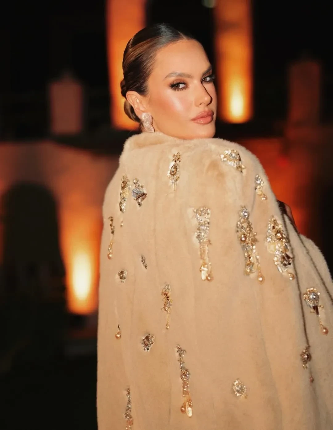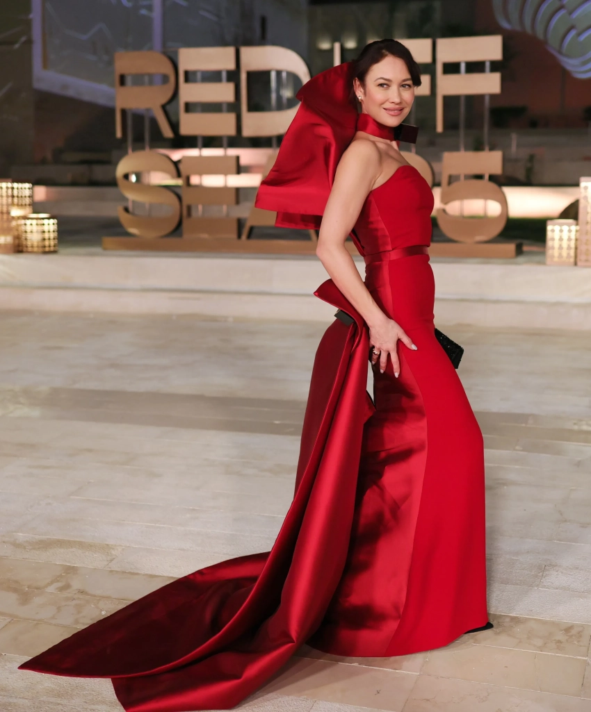 44-летняя Алессандра Амбросио позировала в кутюрном платье и меховой накидке Zuhair Murad с кристаллами, а 46-летняя Ольга Куриленко выбрала красное платье Tima Abid из кутюрной коллекции.
