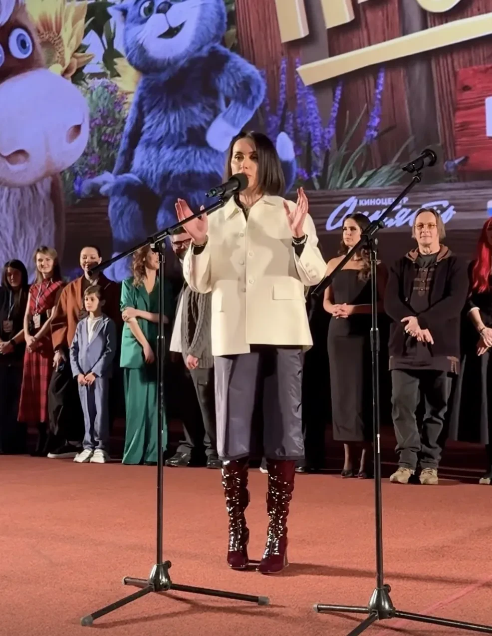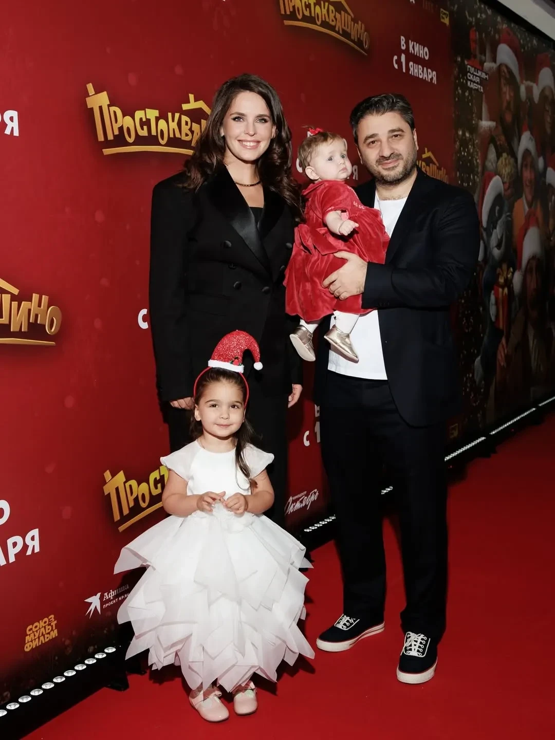 В Москве прошла премьера нового фильма режиссёра Сарика Андреасяна "Простоквашино". Мероприятие посетила Тина Канделаки, а также исполнители главных ролей Иван Охлобыстин, Павел Прилучный и жена Андреасяна Лиза Моряк с дочерьми.