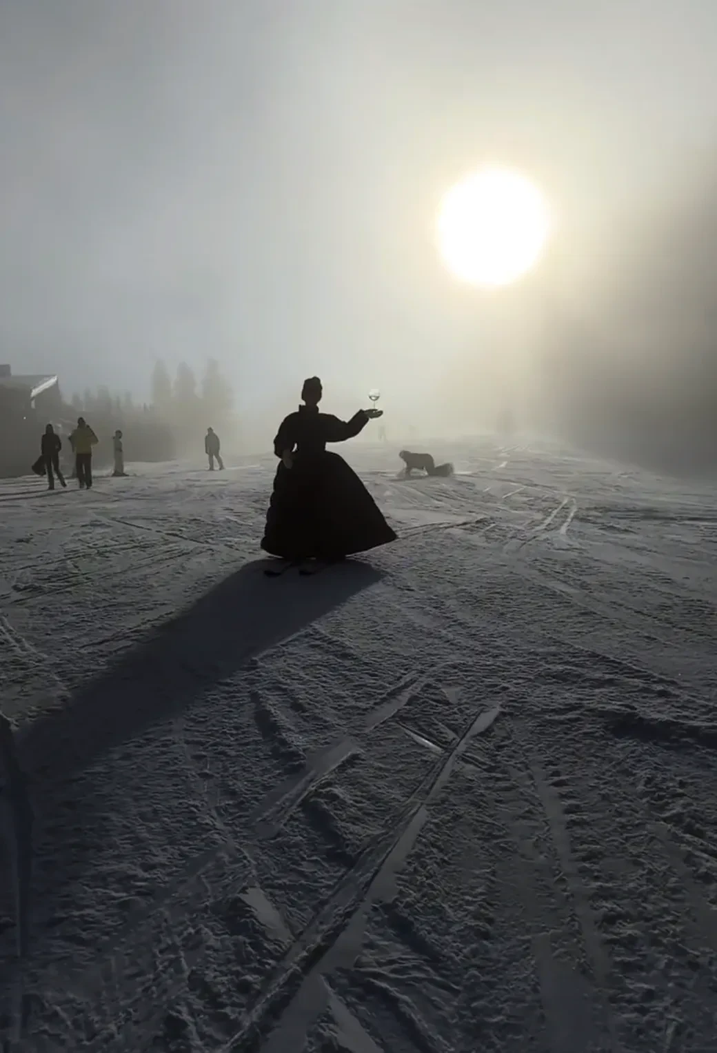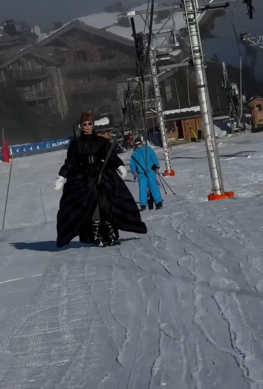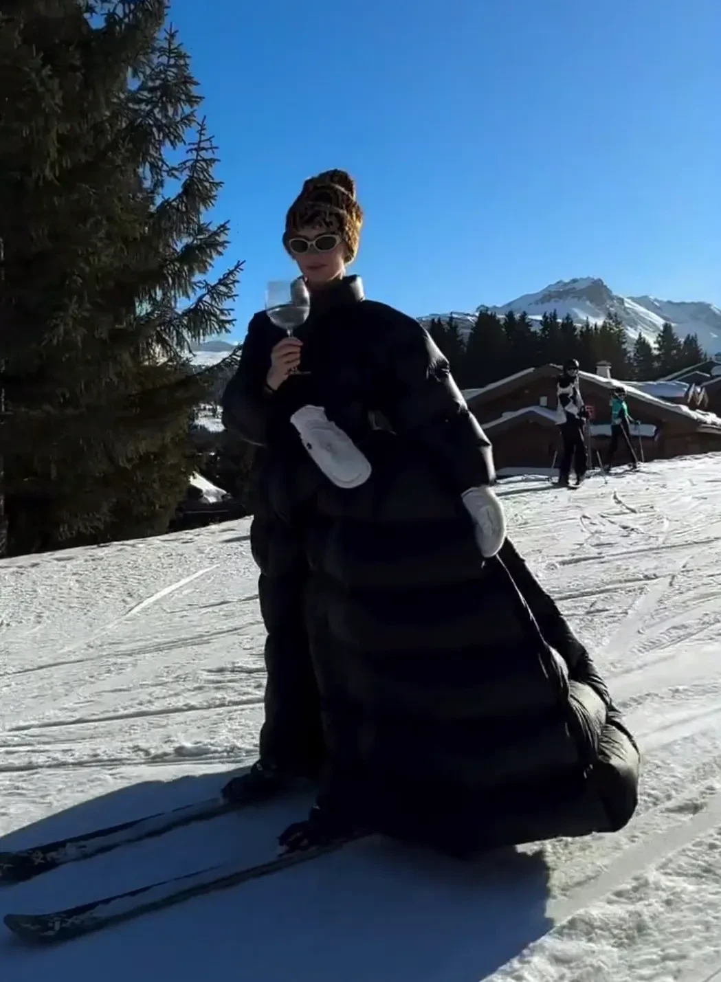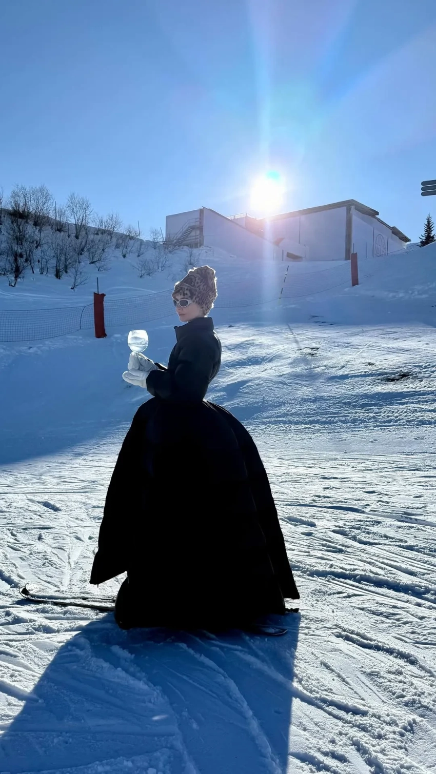 Фото Виктории МанасирОсновательница концепт-стора "КМ20" Ольга Карпуть повторила свой прошлогодний челлендж и прокатилась по склону в луке Balenciaga. На этот раз 42-летний инфлюенсер позировала с бокалом в объёмном пуховике-платье и леопардовой шапке.
