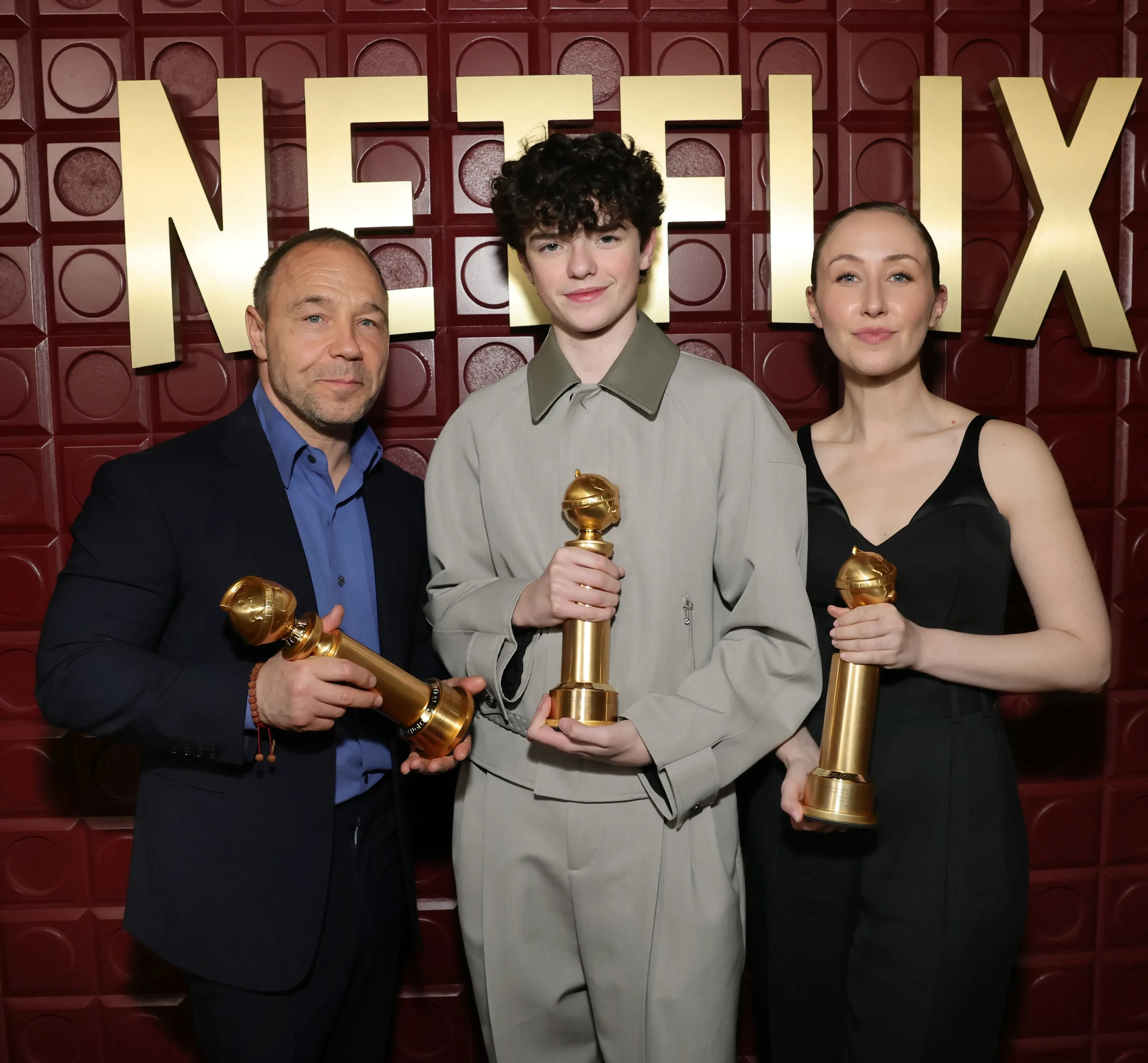 Стивен Грэм, Оуэн Купер и Эрин ДоэртиРанее церемонию вручения премии "Золотой глобус" посетили: Леонардо ДиКаприо, Тимоти Шаламе и Кайли Дженнер, Селена Гомес и Бенни Бланко, Кейт Хадсон, Дженна Ортега, Дженнифер Лопес, Эмма Стоун, Владислав Доронин и Кристина Романова и многие другие звёзды.