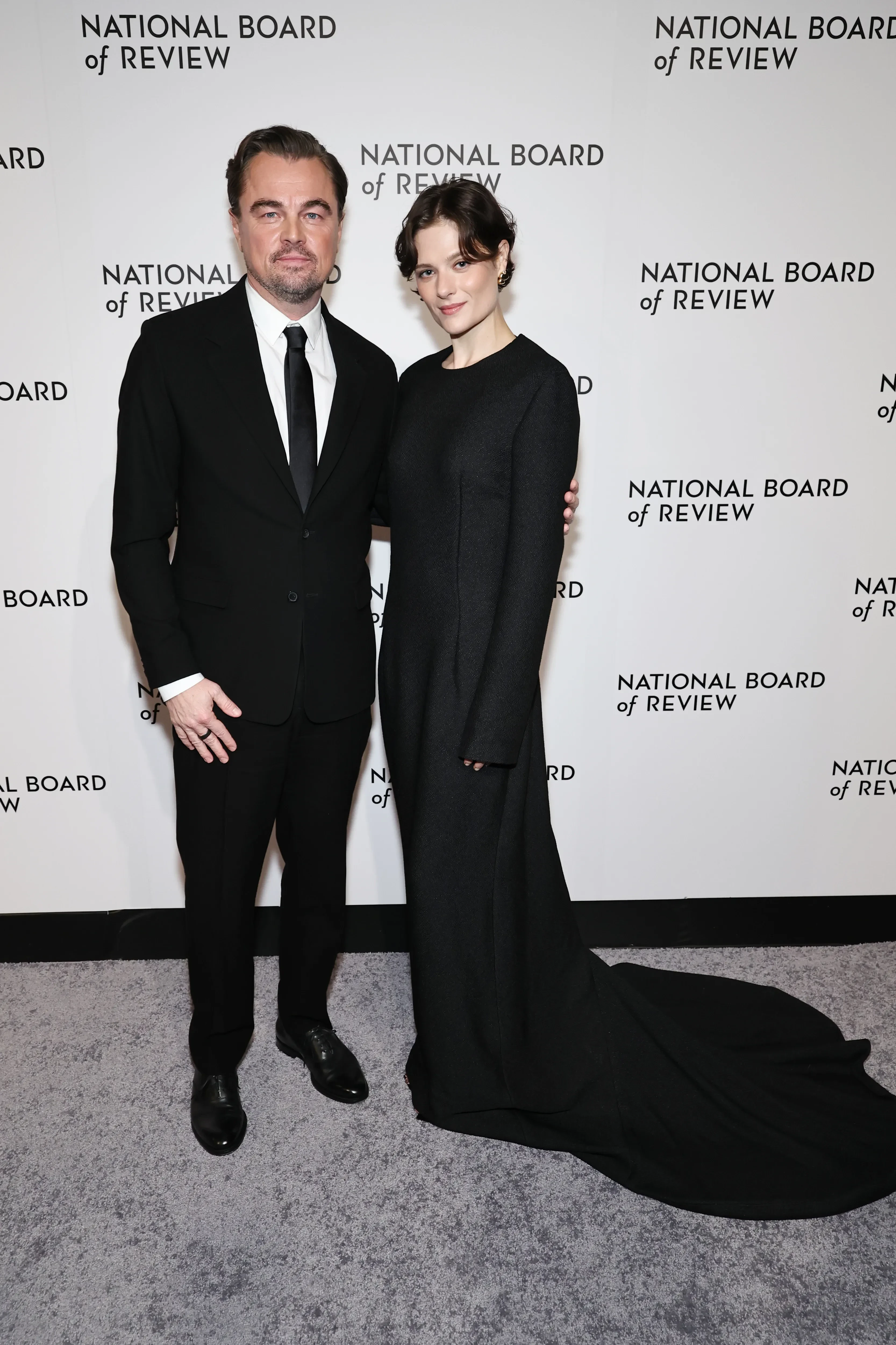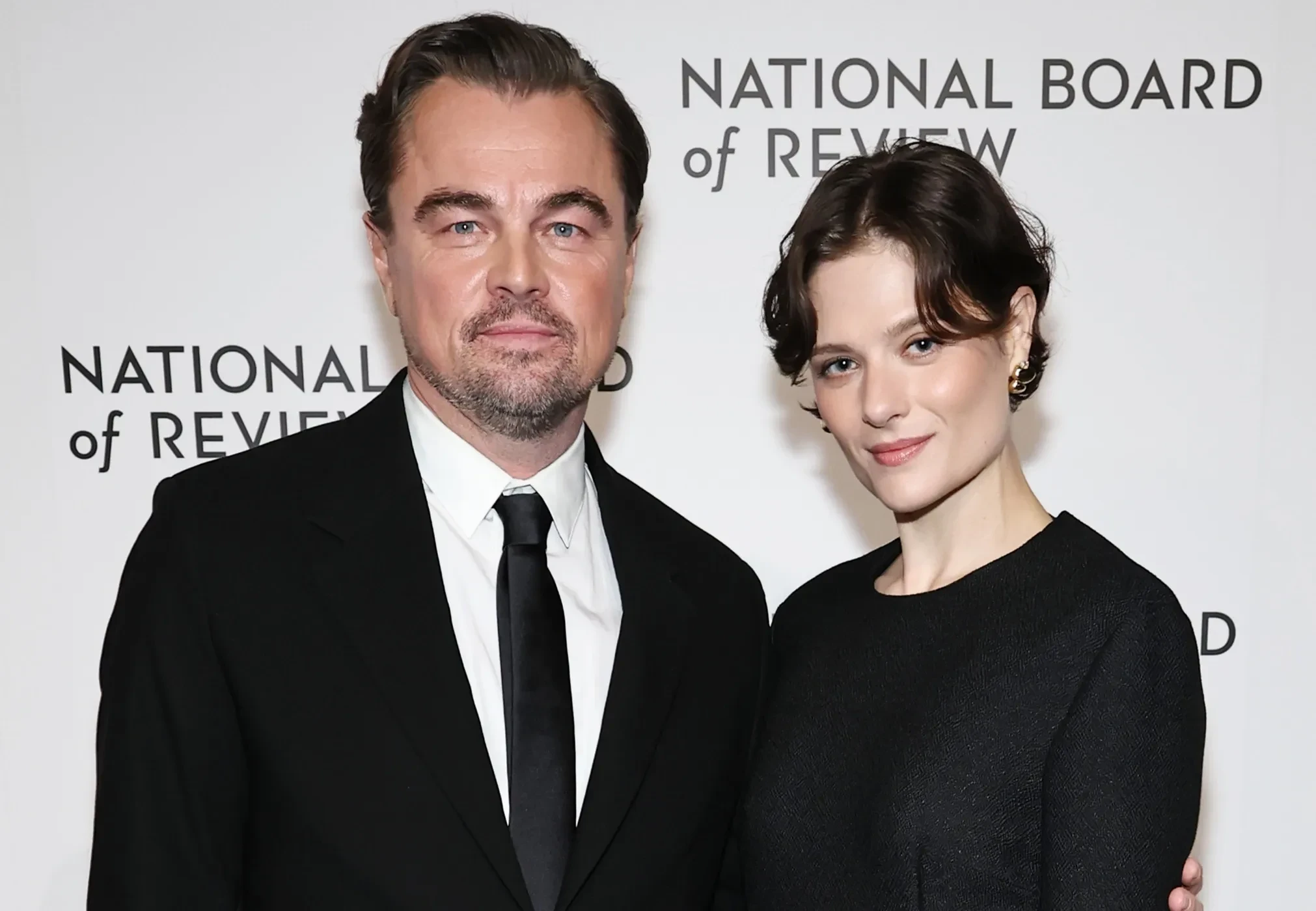 51-летний ДиКаприо позировал на красной дорожке с 34-летней актрисой Луизой Гаммер, которая в этот вечер вручала ему на сцене награду.