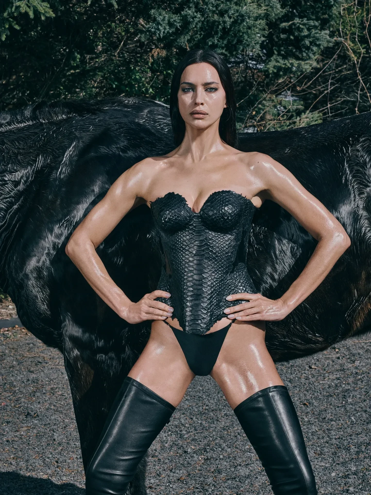 Ирина позировала перед фотографом Стивеном Кляйном в эпатажных нарядах из латекса и кожи: она примерила корсет с имитацией змеиной кожи, плащ, байкерскую куртку и сапоги-трубы. На некоторых снимках модель также появилась в нижнем белье с портупеей и даже полностью обнажённой, прикрыв интимные места руками.