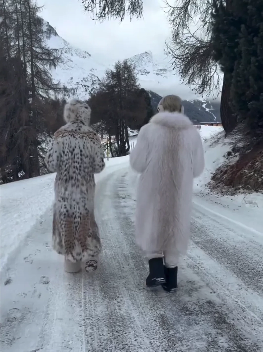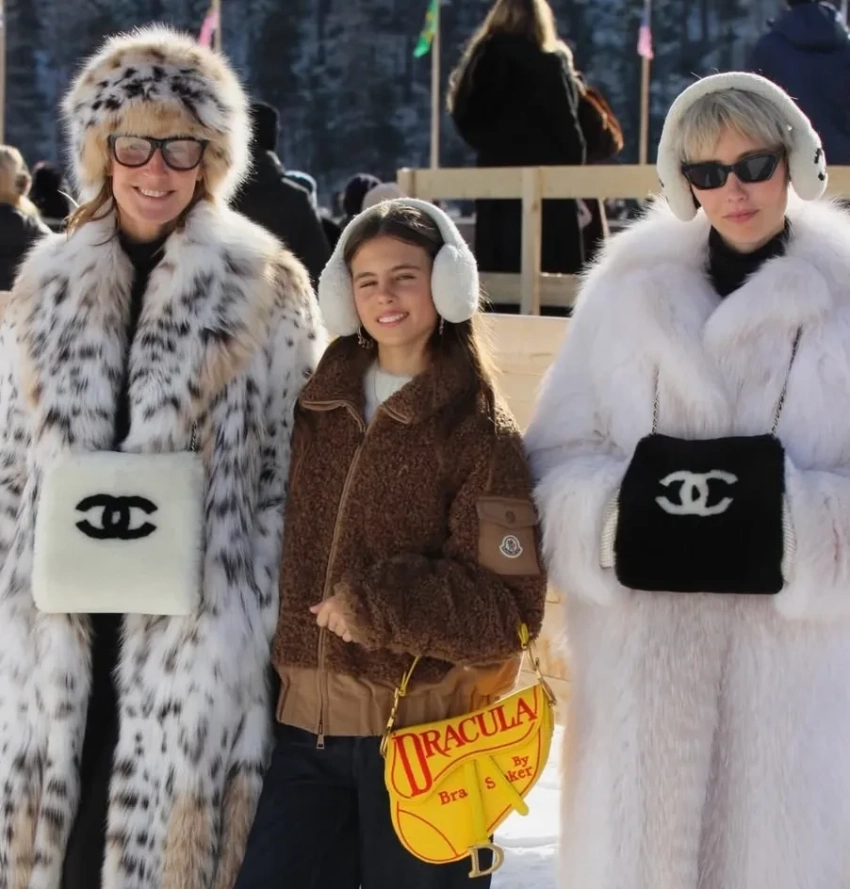 Бондаренко с детьми гуляли по курорту в ярких образах. Бизнесвумен надела длинную пятнистую шубу и меховую шапку в тон, дополнив образ муфтой Chanel и унтами. Её старшая дочь Алина выбрала похожий образ — белую шубу, муфту Chanel чёрного цвета и меховые наушники того же бренда, а младшая наследница Мия позировала в куртке Moncler и с "книжной" сумкой Dior, которые недавно обсуждали в сети.