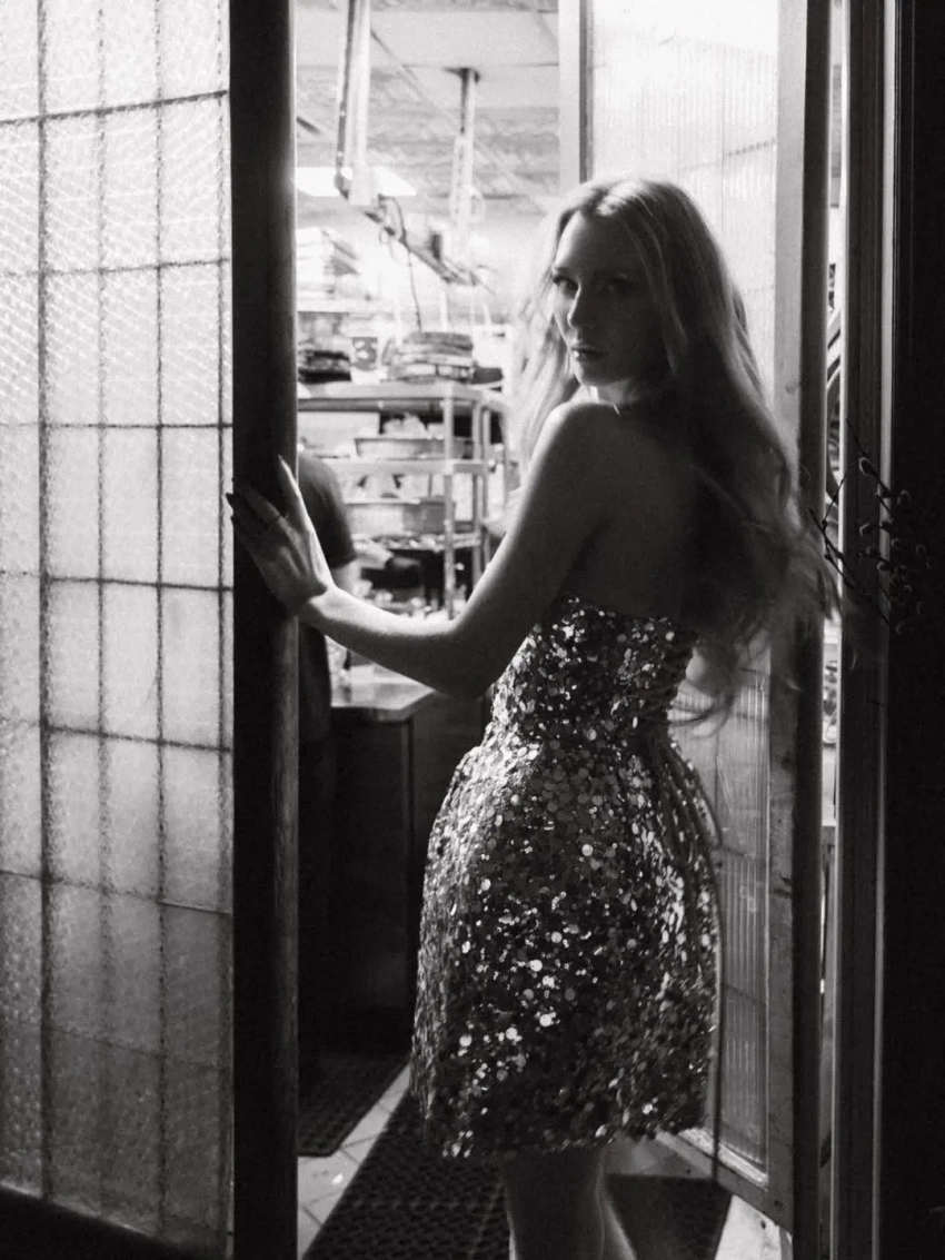 Вечер прошёл в ресторане известной сети "Мари Vanna", концепция которого полностью построена на русской культуре и ностальгии. Для фото Делви попозировала в кокошнике и на фоне полок с матрёшками.