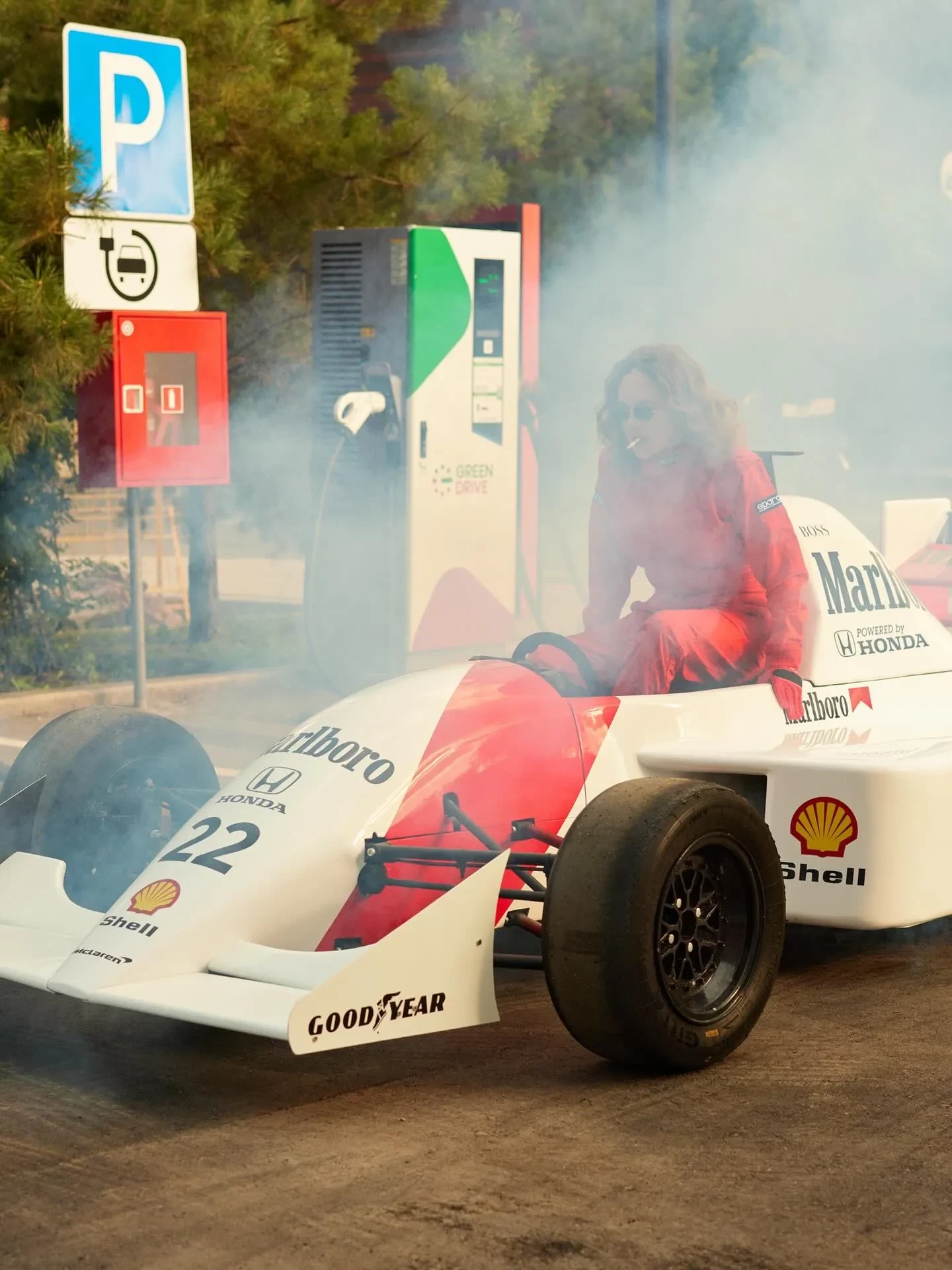 В рамках съёмки Тарасова примерила комбинезон в цвет автомобиля. Свой образ она завершила перчатками и солнцезащитными очками, а для того, чтобы добавить драматичности, держала сигарету.