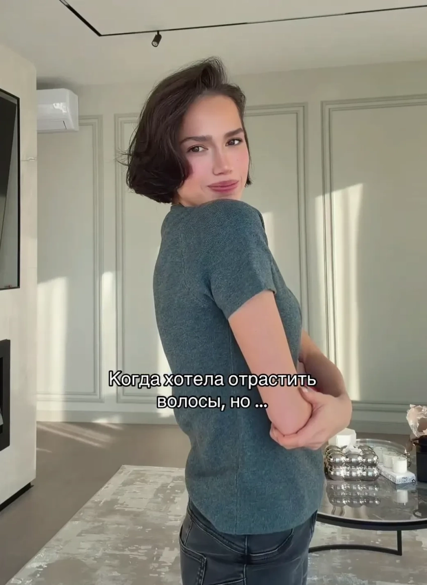 Спортсменка опубликовала видео с новой причёской, где она позирует в кофте с декольте и футболке. Она намекнула, что планировала отращивать волосы, но в какой-то момент передумала. "Зато со мной не скучно", — написала Загитова.
