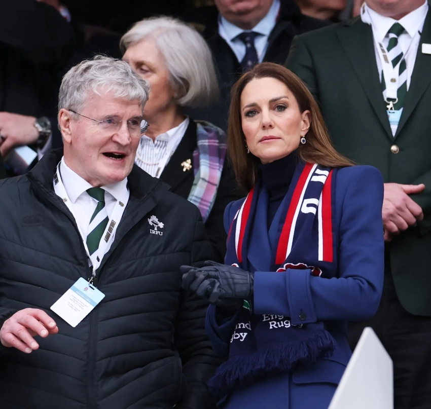 44-летняя Кейт Миддлтон посетила матч по регби Guinness Six Nations 2026 между Англией и Ирландией.