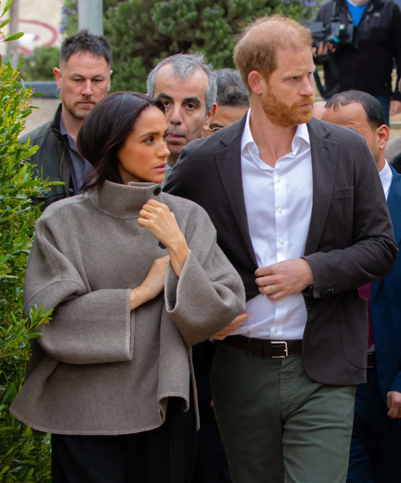 Во второй день своего первого за полтора года международного совместного визита супруги вместе с делегацией ВОЗ посетили центр для наркозависимых и фонд развития человеческого потенциала в Аммане. 44-летняя Меган Маркл появилась на публике в чёрных брюках и коротком сером пальто, а принц Гарри надел белую рубашку и пиджак.