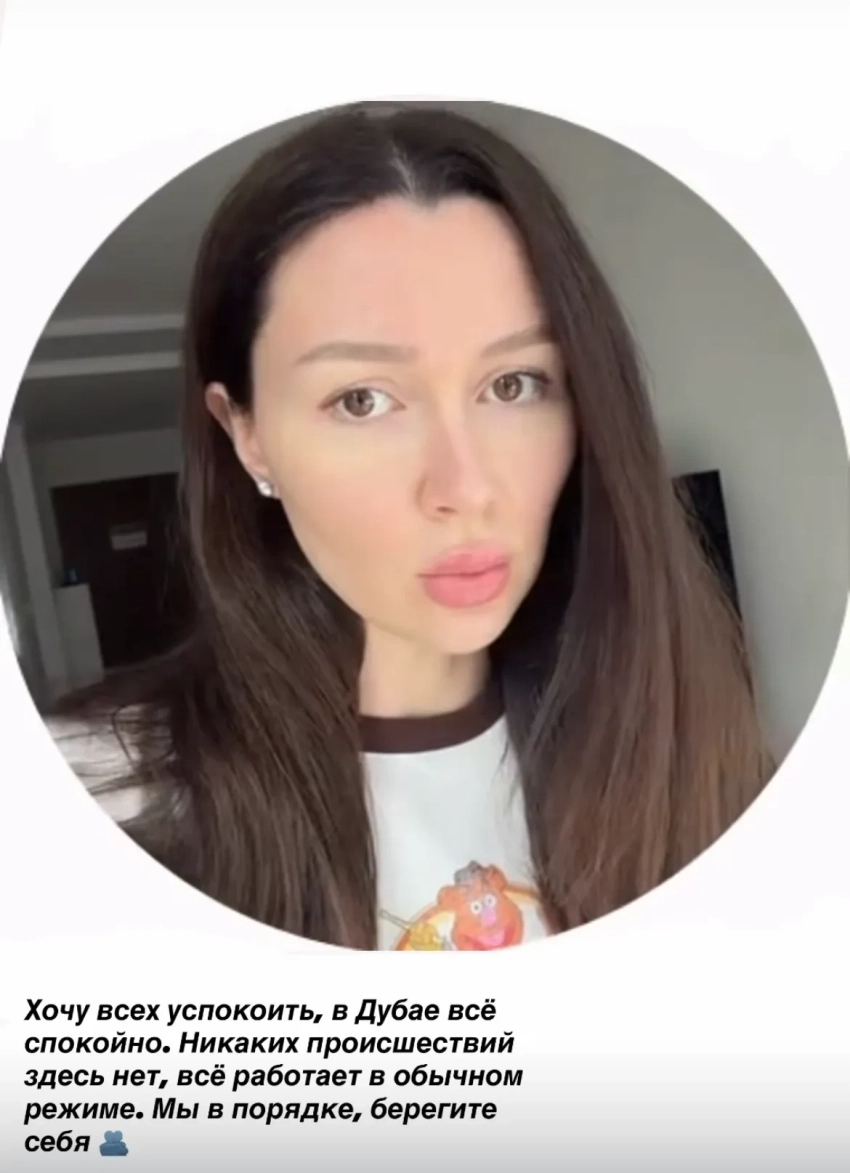 Фото Юлии ВавиловойДочь покойной актрисы Анастасии Заворотнюк Анна вместе с мужем и годовалым сыном живёт на два города — Дубай и Москву — и сейчас находится в Дубае. Сначала она рассказала, что "всё спокойно", а потом заявила, что "тревожно и грустно", ведь она наблюдала взрыв "прямо около дома". Утром Анна вышла на связь и сообщила, что ночью получила оповещения с "ужасно громким звуком сирены". После этого она не слышала взрывов, а сейчас такси и доставки "продолжают работать".