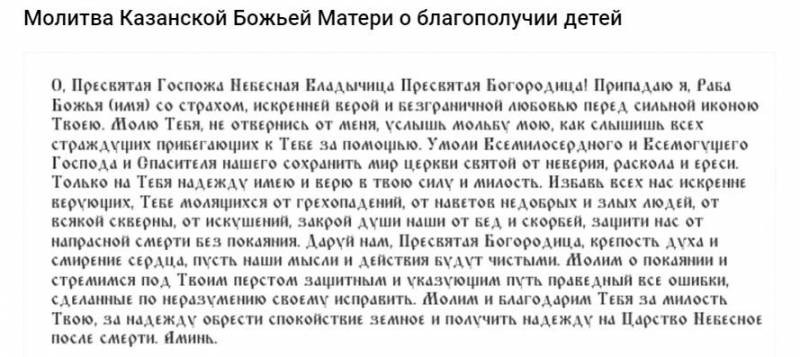 Казанская Богородица является заступницей детей, семей, невест и всех, кто ожидает появления малыша. В день появления Казанской иконы традиционно звучат разнообразные молитвы, направленные к Ней.