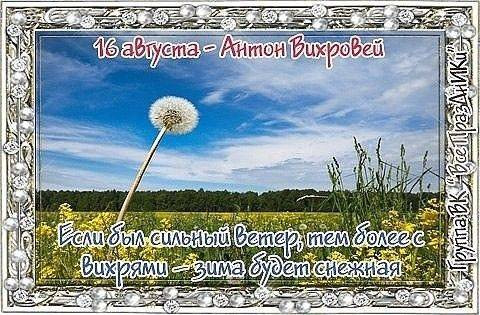 Наши предки верили, что, если 16 августа дует сильный ветер с вихрями, это предвещает морозную и снежную зиму. Также считалось, что погода в этот день задает тон будущим погодным условиям октября. Специалисты прошлого также опасались затяжных осадков, если день выдался дождливым, так как такие осадки часто задерживались на длительный срок.