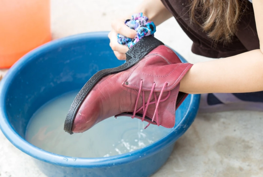 Перед применением любых средств обувь необходимо тщательно очистить. Для кожаной обуви используйте тряпку, смоченную в прохладной воде. Для тканевых моделей также подойдет влажная тряпка. А для замши — сухая тряпка из микрофибры, чтобы аккуратно удалить пыль и грязь. Только после этого можно наносить шампунь или другие средства.