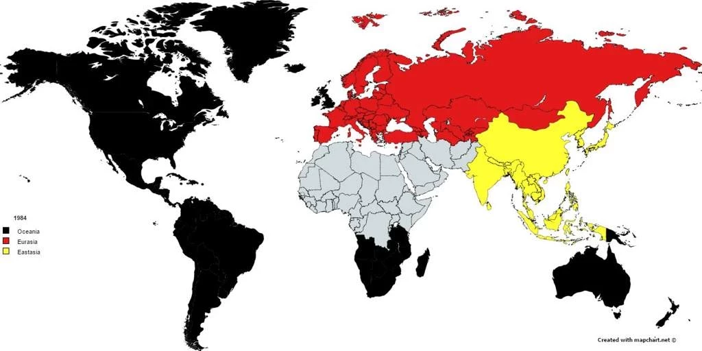 В мире Оруэлла существует лишь три сверхдержавы, и каждая из них находится в состоянии постоянной войны. Эти войны всегда ведутся за ресурсы, но никогда не приводят к настоящей победе, лишь поддерживают внутренний контроль. Современная политическая ситуация также не отличается стабильностью: международные конфликты, торговые войны, гонка за доминирование в технологических и экономических сферах — все это напоминает реальность из романа Оруэлла.