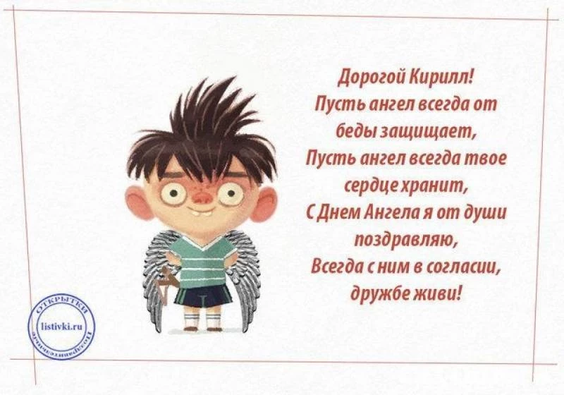 Добрый, милый и отважный, бравый парень по имени Кирилл, поздравляю тебя с Днем ангела. Желаю, чтобы жизнь принимала только входящие звонки счастья, радости и удачи, чтобы любое дело было тебе по плечу, чтобы сердце горячо любило и было искренне любимым, чтобы душа всегда стремилась к заветной мечте.