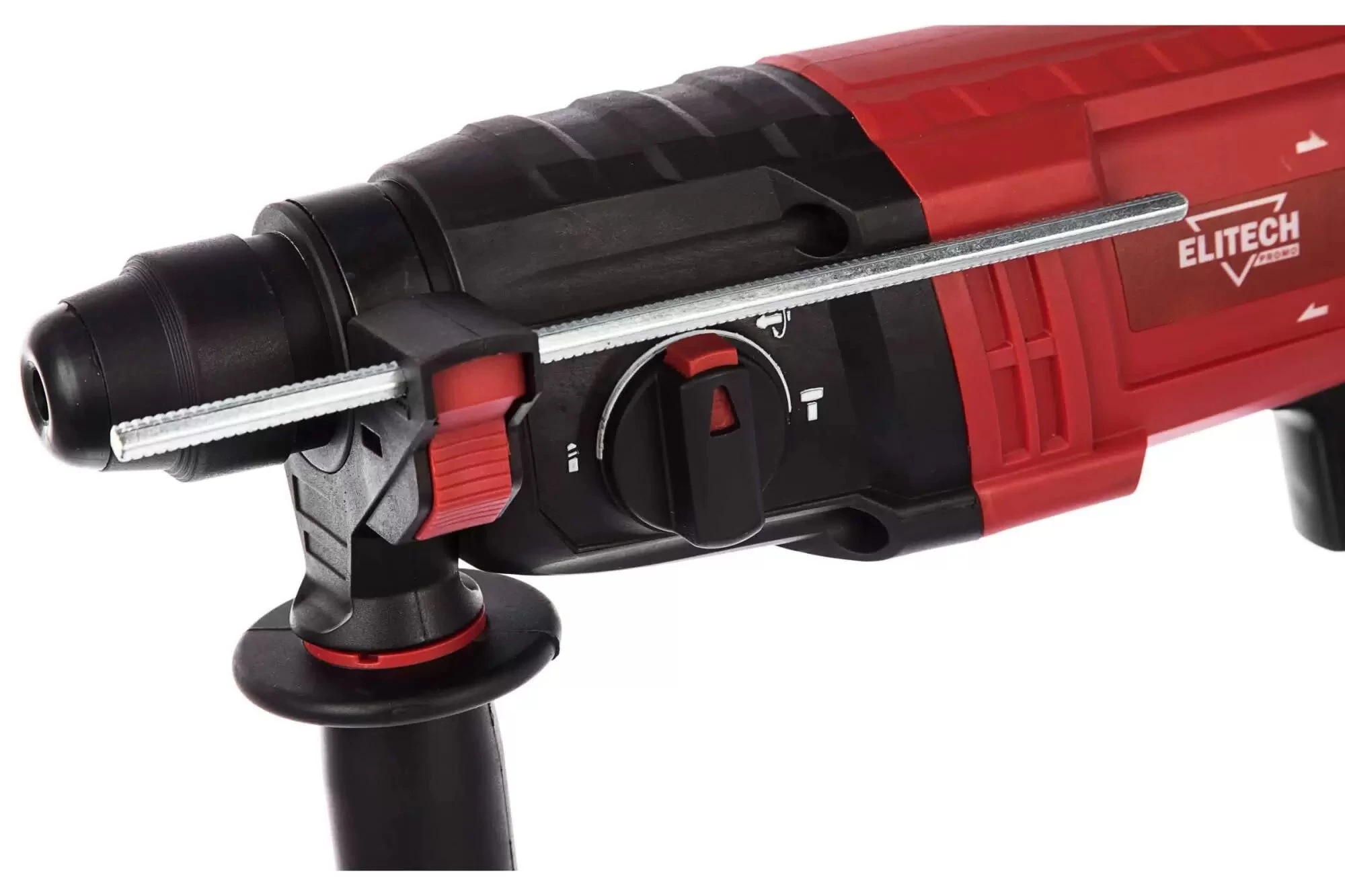 Elitech RH 0928RE — ещё один продукт бренда, предназначенный для выполнения интенсивной работы, требующей высокой точности. Это устройство предлагает пользователям более высокие рабочие характеристики, чем предыдущая модель в нашем обзоре: мощность RH 0928RE составляет 850 Вт, а максимальная энергия удара — 3,2 Дж. Частота вращения на холостом ходу может достигать 1150 об/мин, а удары — 5150 уд/мин. Предохранительная муфта и система автоотключения при перегреве повышают безопасность для пользователя и увеличивают срок службы.