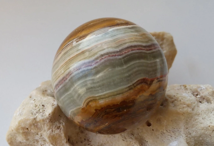 Цветовая палитра оникса разнообразна: от классического черно-белого до зеленого, красного, коричневого и голубого. Об этом пишет сайт echonedeli.ru.