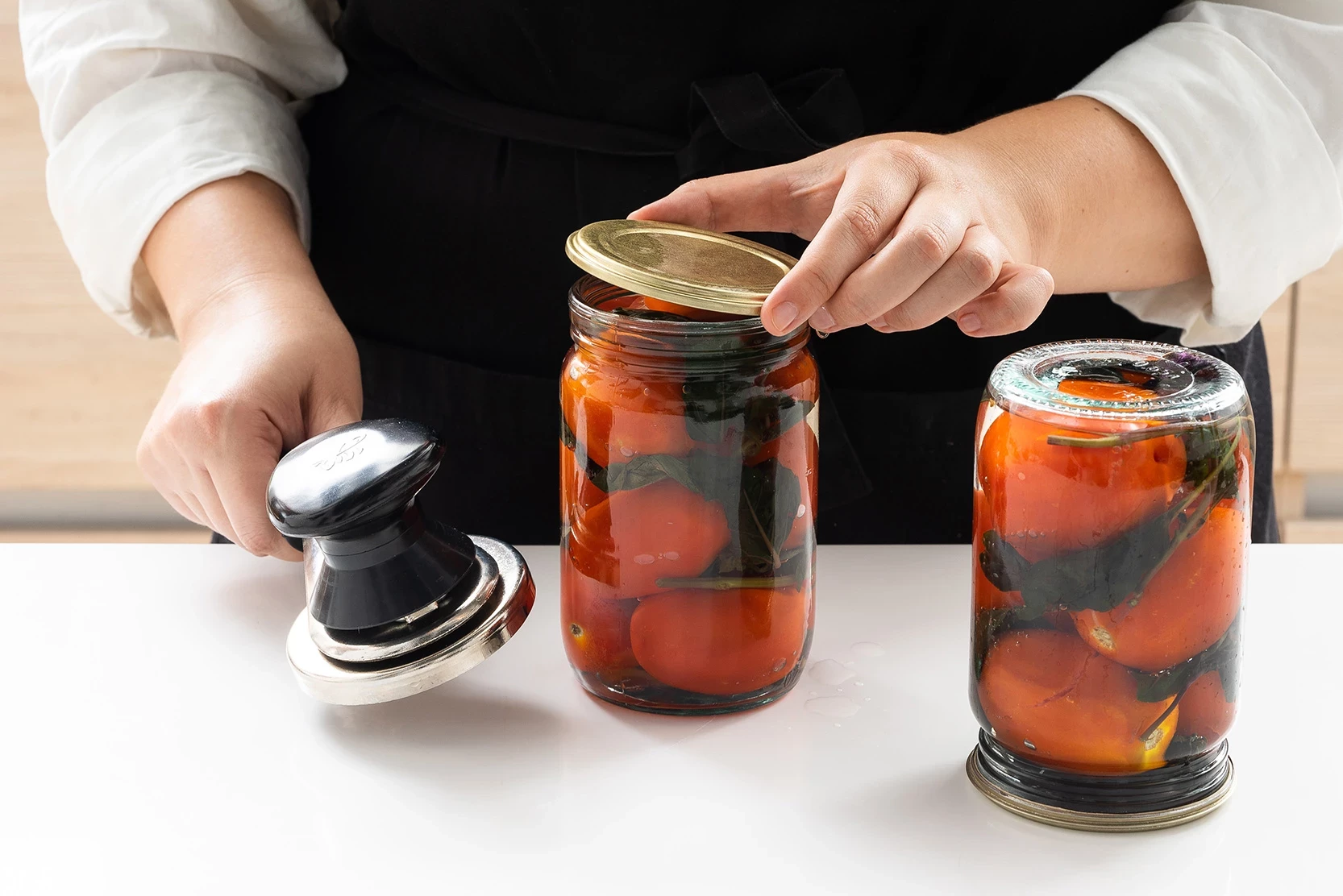Причина в полимерном покрытии крышки. После закручивания оно расширяется и герметично запечатывает банку. По мере остывания внутри создается вакуум, который обеспечивает плотное закрытие и характерный тихий хлопок при открытии.