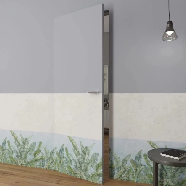 В отличие от классических моделей, где коробка и наличники подчеркивают проем, скрытые двери встраиваются в стену с помощью специального алюминиевого профиля. Полотно идет вровень со стеной без декоративной обвязки. Эффект впечатляет: создается ощущение сплошной поверхности, а дверь видна только по контуру или ручке.