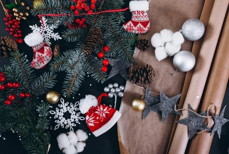 • В тренде вязаные игрушки, текстильные звёзды и элементы из джута, создающие ощущение уюта и домашнего тепла.