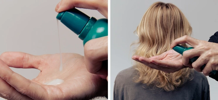 Лучше всего выбирать спреи или флюиды с максимально легкой текстурой. Они не склеивают пряди и не лишают объема. В составе стоит искать пантенол, глицерин или легкие увлажняющие полимеры. Кондиционер можно наносить как до укладки, так и после — легким распылением по длине перед выходом из дома.