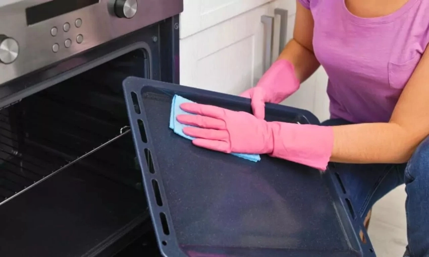 - Чтобы грязь не накапливалась, протирайте свежие брызги сразу после приготовления, только дождавшись полного остывания духовки.