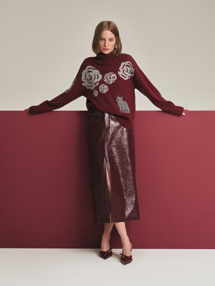 Этот сезон мы встречаем с насыщенными оттенками вишни, которые станут настоящим хитом. Объемные жаккардовые свитера и лаковые юбки-карандаши с кокетливыми разрезами — вот что стоит добавить в свой гардероб. Главный модный тренд — это тотальная бордовая палитра, которая не только подчеркивает индивидуальность, но и отлично сочетается с насыщенными оттенками синего.