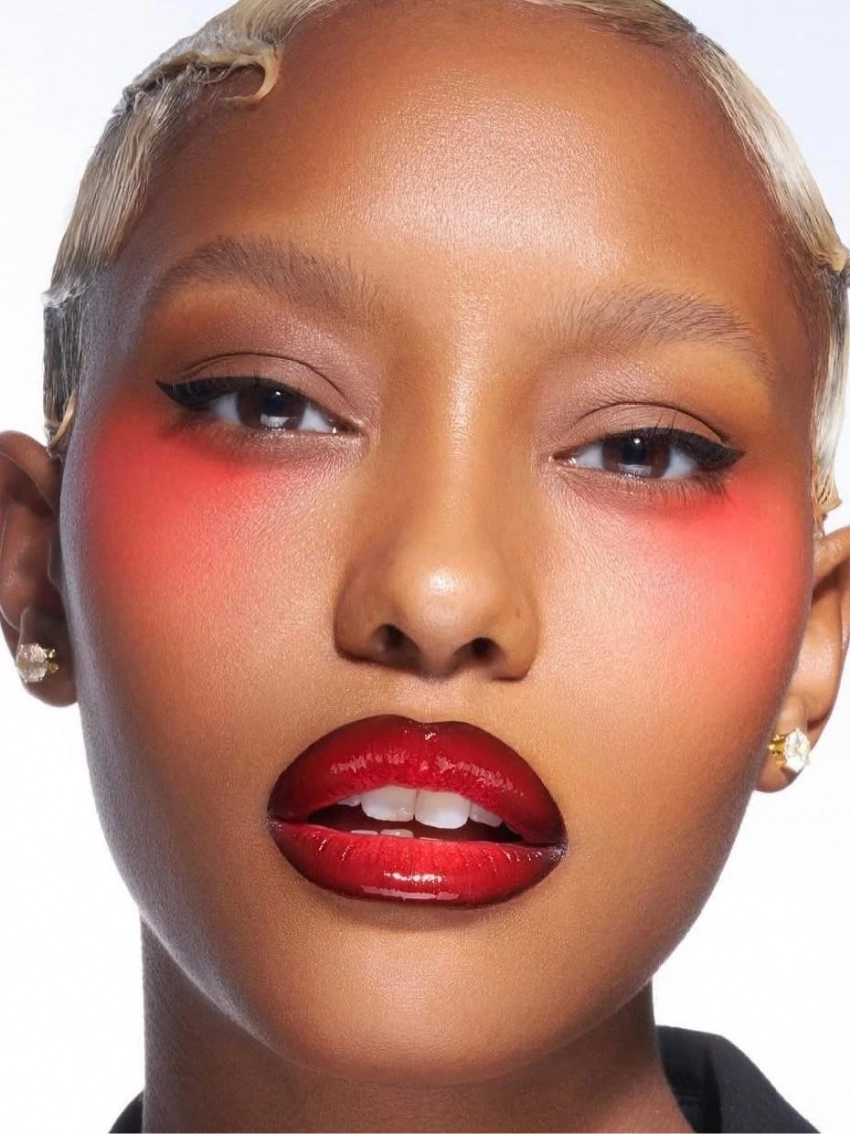 Этот вариант подойдет для яркого образа: используйте красный или вишневый карандаш, алую помаду и глянцевый блеск.