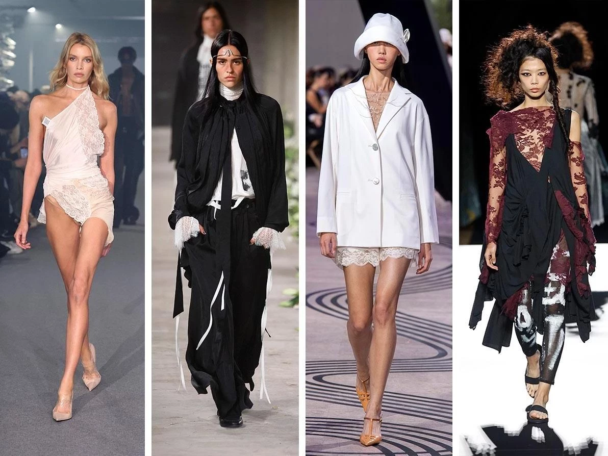 Бодуарный стиль вернулся: кружевные элементы теперь украшают не только платья, но и верхнюю одежду. Черное кружево, контрастные вставки и нежные ажурные ткани придают образу чувственность.