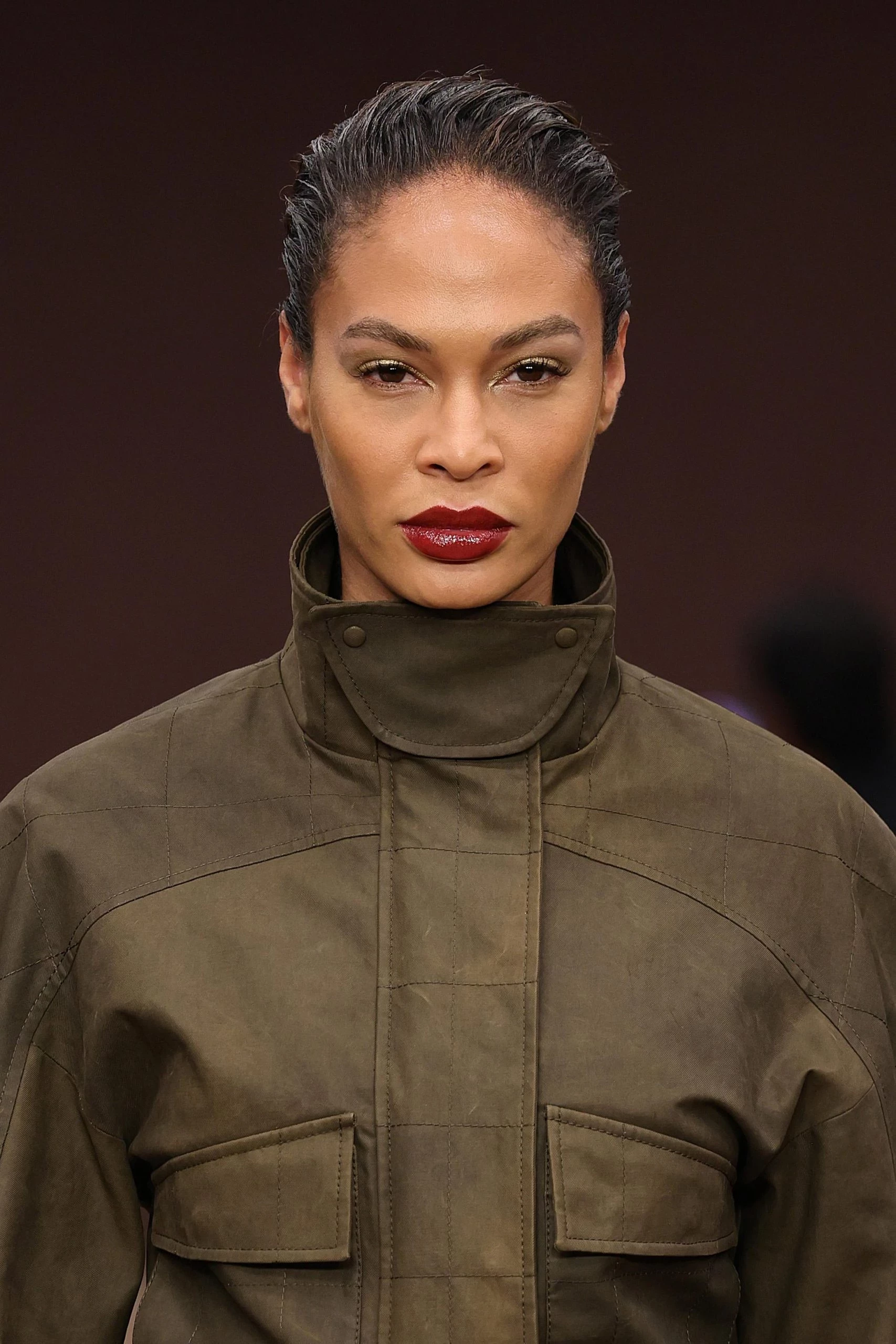 Тренд «красные губы и никакой туши» продолжает свою эволюцию в 2025 году, но теперь акцент смещается на более глубокие и теплые оттенки. Терракотовая помада — это прекрасная альтернатива яркому красному, который часто бывает слишком агрессивным для дневного макияжа. Ее теплота и универсальность позволяют легко переходить от повседневного образа к вечернему, придавая губам выразительность и утонченность. Красно-коричневый оттенок с оранжевыми нотками особенно выигрышно смотрится в сочетании с легким нюдовым макияжем глаз и румянами в теплых тонах.
