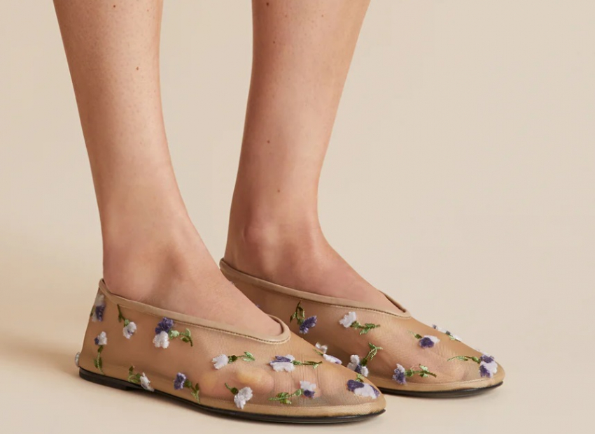 1. Сетчатые балетки с цветочной вышивкой