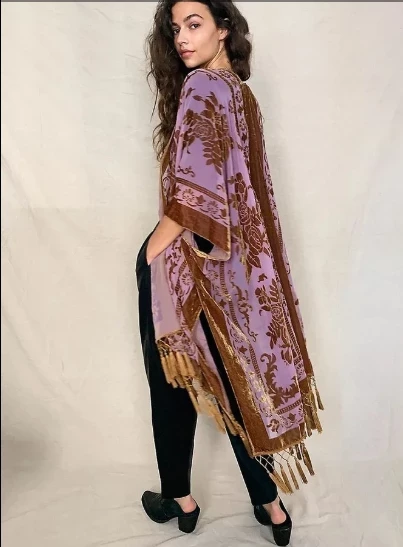 Для легкого бохо-вибра выбери мантель с бахромой или вышивкой. Дополните его платьем макси и ботинками в стиле вестерн — многослойные украшения завершат образ настоящей королевы летних фестивалей.