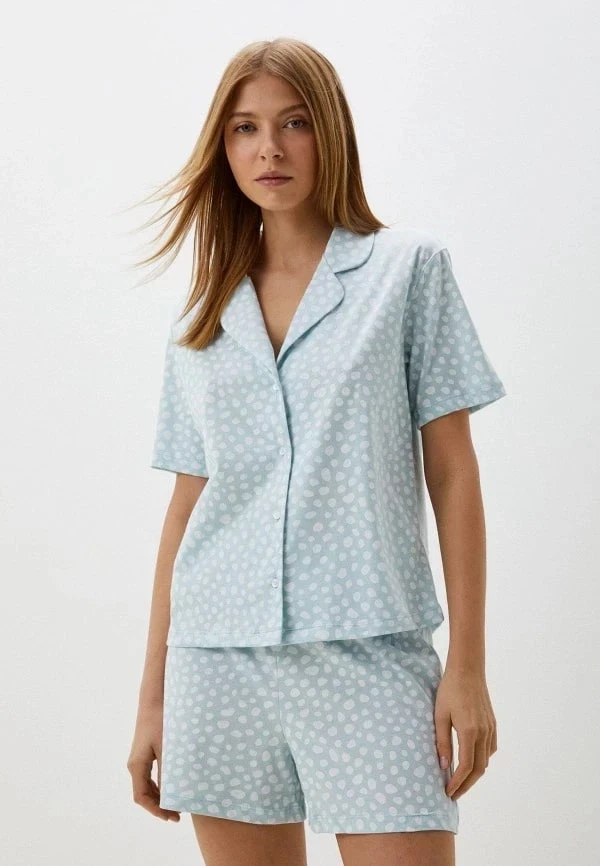Современные пижамные комплекты — это рубашки с отложным воротником, свободные брюки или шорты и изящные топы на тонких бретельках.