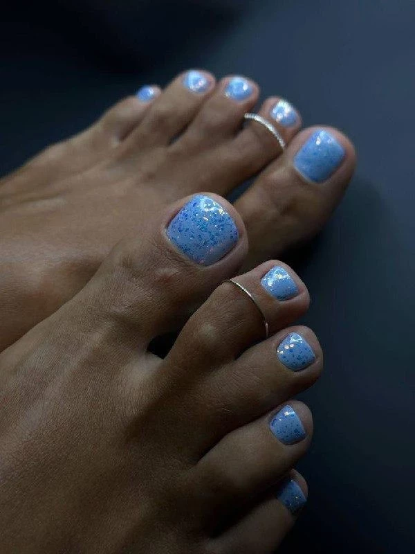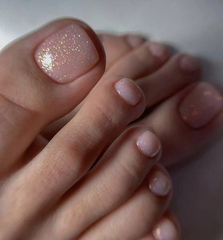 Нежность и мерцание — для тех, кто хочет романтики и игривого настроения. Такой педикюр выглядит деликатно и ухоженно, словно утреннее сияние.