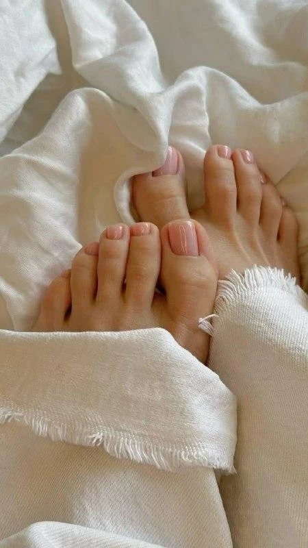Минимализм, который всегда в моде. Полупрозрачный молочный оттенок подчеркивает загар, делает ножки визуально ухоженными, а френч в молочной гамме — элегантный и универсальный выбор для любой пары босоножек.