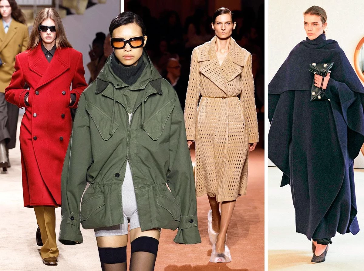 Оверсайз по-прежнему актуален, но приталенные силуэты возвращаются в моду в новой форме. Дизайнеры предлагают подчёркивать талию при помощи тонких ремней, надетых поверх объёмных пальто. Это позволяет менять образ за счёт одного аксессуара — достаточно снять пояс, чтобы получить новый силуэт.