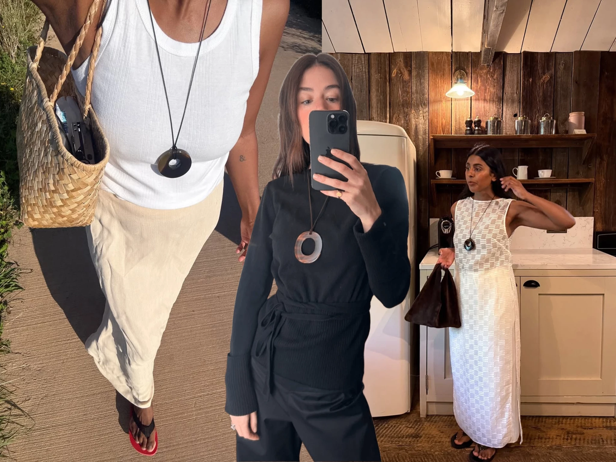- Один крупный кулон — главный акцент, без лишних украшений. Так делают инфлюенсеры.