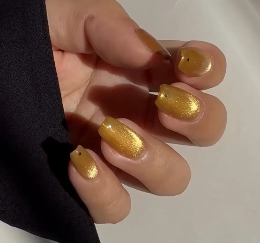 Львам подходит тёплое тёмное золото с крупными декоративными элементами на одном из ногтей. Этот цвет отражает магнетизм и способность притягивать богатство, делая образ ярким и уверенным.
